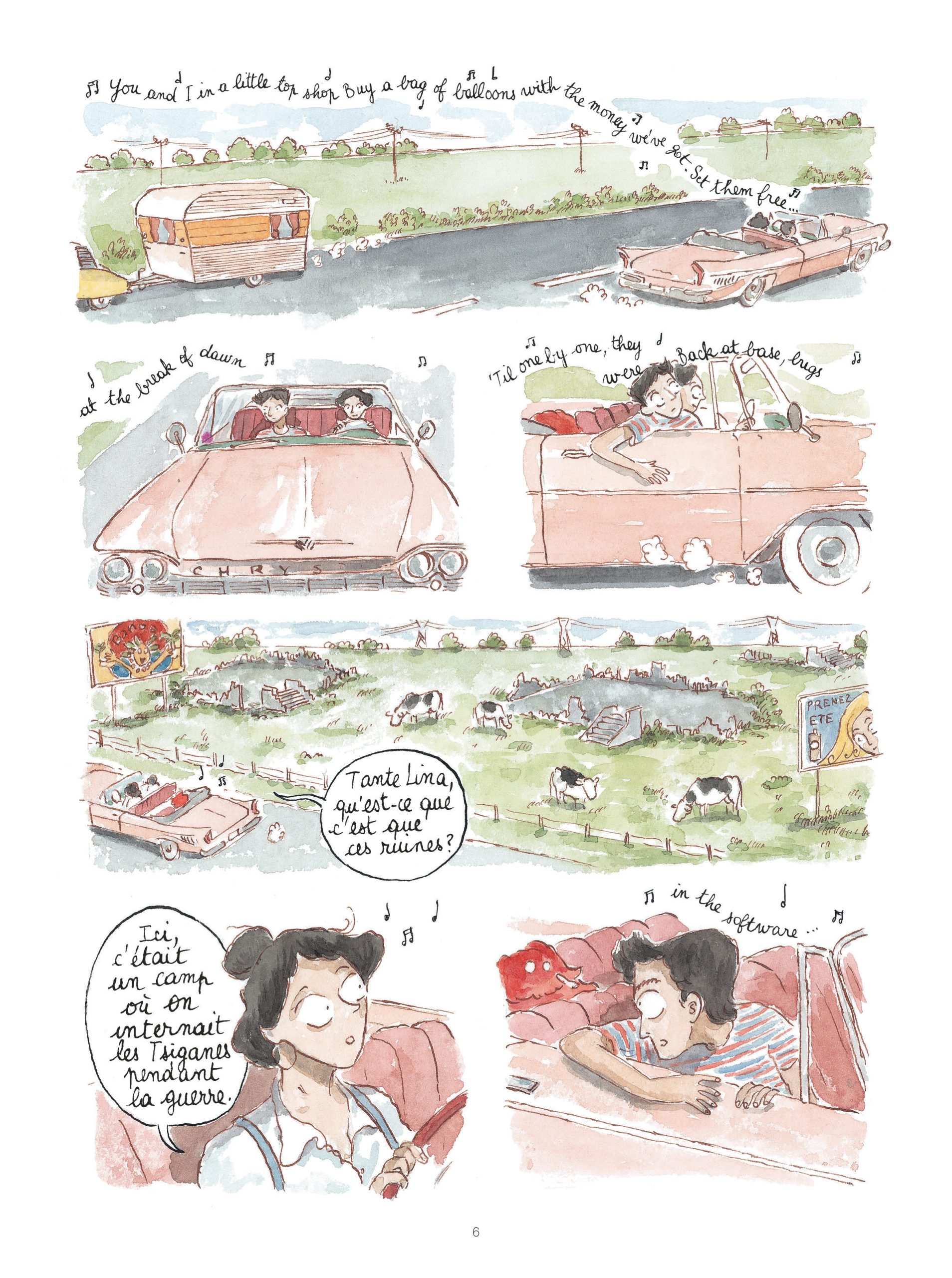 Résumé de l’éditeur : 1984. Après le décès de sa mère, Antoine, 18 ans, passe l’été à la campagne, chez sa tante Lina. Entre chaleur et solitude, il cherche à s’évader dans ses rêves. S’installent alors des gens du voyage aux abords du village… Fasciné par ceux qu’on appelle les Tsiganes, Antoine est attiré par un jeune Manouche aux cheveux de jais et au regard sombre…