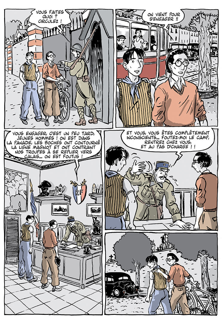 Résumé de l’éditeur : Nous sommes en 1936 et un vent d’espoir souffle sur le monde ouvrier avec la victoire du Front Populaire aux élections. Apprenti dans les ateliers de construction navale de Bordeaux, Jacques ne profite pas moins de son adolescence, croquant avec insouciance la vie — à pleines dents et en dessins sur son carnet — en ces temps de premiers congés payés… Mais bientôt, c’est la mobilisation générale puis la guerre. Réformé, Jacques n’y prend pas part. La débâcle de 1940 ramène à Bordeaux les troupes allemandes. Commence alors le temps de l’Occupation, du couvre-feu, des rationnements, des dilemmes et des premiers amis disparus… Mais faut-il pour autant cesser de vivre pleinement ? L’intégrale d’une saga tout public de très haute tenue, directement tirée de la vie du narrateur, le propre père de Bruno Loth.