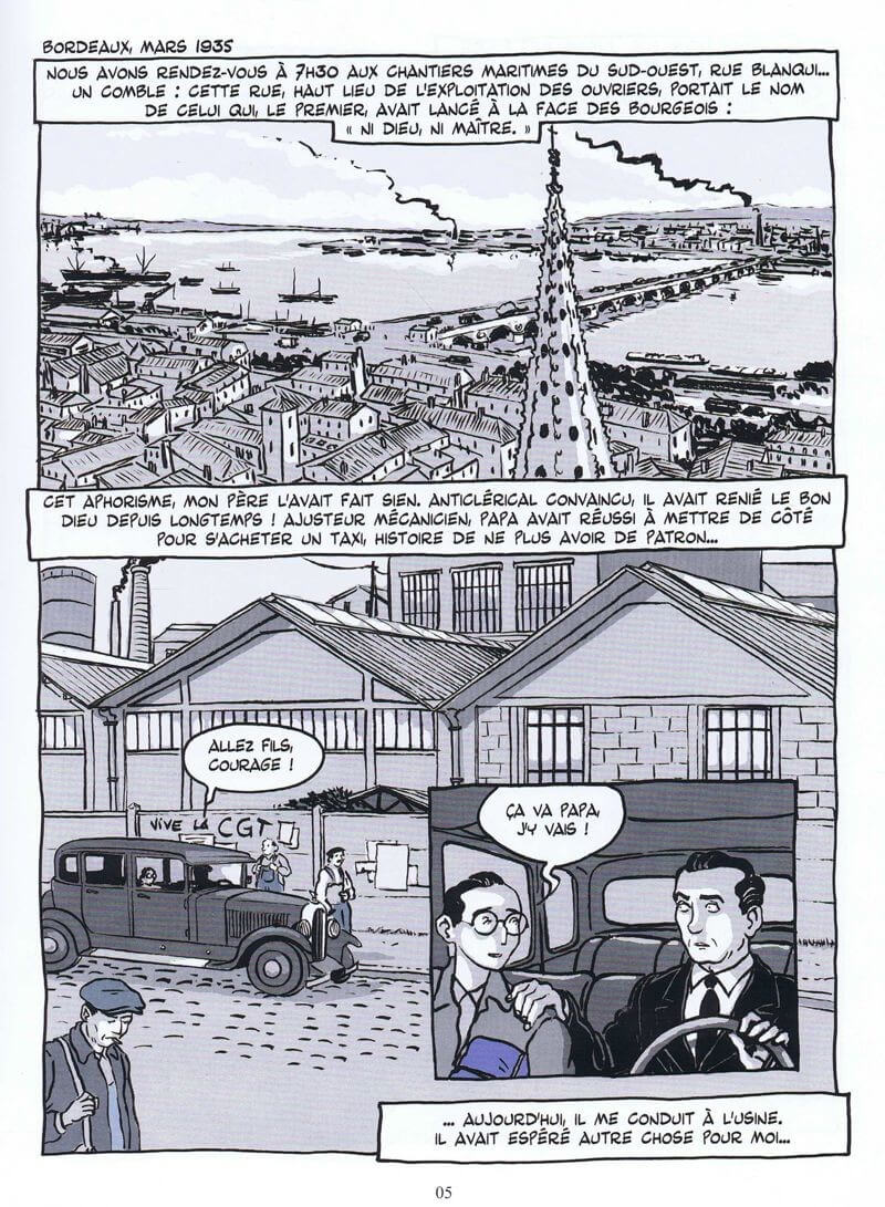 Fondée sur la propre vie du père de l’auteur Bruno Loth, cette histoire est une très belle fresque sociale et historique de la France des années 30. En choisissant de raconter la vie d’un ouvrier, il peut ainsi décrire tous les bouleversements sociaux et sociétaux du pays. De l’avènement des Accords de Matignon après la grève, mais aussi les années de crise et bien sur les années de guerre.