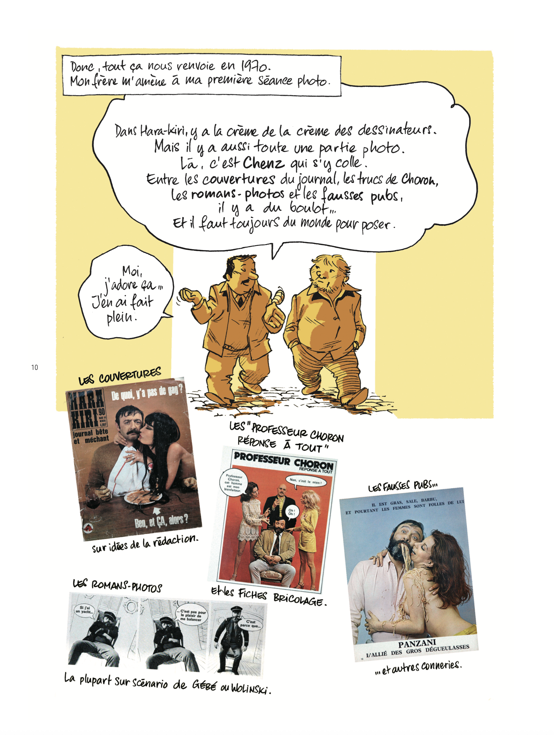Mauvais goût, femmes souvent dévalorisées, blagues parfois douteuses, fiches bricolage un peu gore et conseils ineptes côtoyaient dans les colonnes du journal de fines plumes et des crayonneurs de grand talent. Cette épopée résumée ici est enrichie d’un dossier très documenté avec une interview des auteurs et un texte de l’historien Stéphane Mazurier, auteur d’une thèse intitulée « L’hebdo Hara-Kiri/Charlie Hebdo, un journal des années 1970 « .