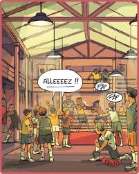 Carole Maurel a su retranscrire avec habileté les corps en mouvement, les entraînements et les combats, la sueur et la fatigue, les poings et les sacs de sable. Il faut souligner qu’elle a eu la chance de pratiquer un peu la boxe française. Et ça se ressent dans les planches de la salle de sport. Le tout porté par une très jolie gamme chromatique que l’on reconnait tout de suite.
