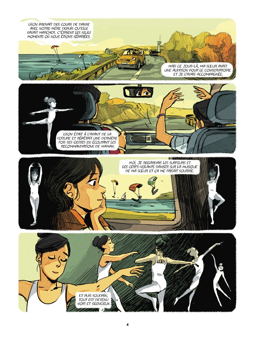 Sa mère est surprotectrice et ce n’est pas les cours de danse classique qui l’épanouissent. Elle n’aime pas la danse, juste qu’elle aime s’y rendre. Sans conviction ni grand talent, elle pratique pour sa mère, pour sa sœur disparue.