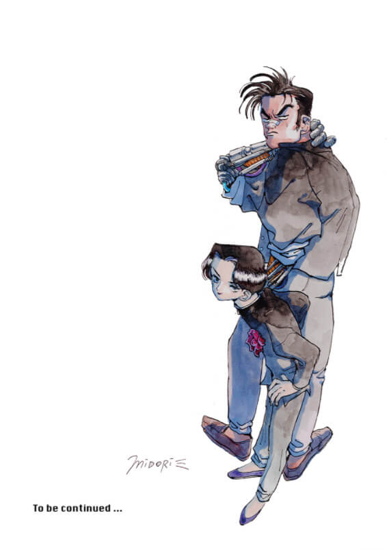 Sous les premières scènes de combat, le décor qui se plante, les jérémiades des antagonistes de première ligne, les messages sibyllins de Gin-iro et Ippei qui prend peu à peu ses marques, on décèle un monde plus vaste. Des questionnements qui nous feront voyager dans le passé et entr’apercevoir un futur inquiétant. Les protagonistes, déjà, nous paraissent tout petit face à une menace qui les dépasse. Mais à coup sûr, Gin-iro a plus d’un tour dans sa caisse à outils. Et à coup sûr, il pourra compter sur Ippei pour être son homme de main.