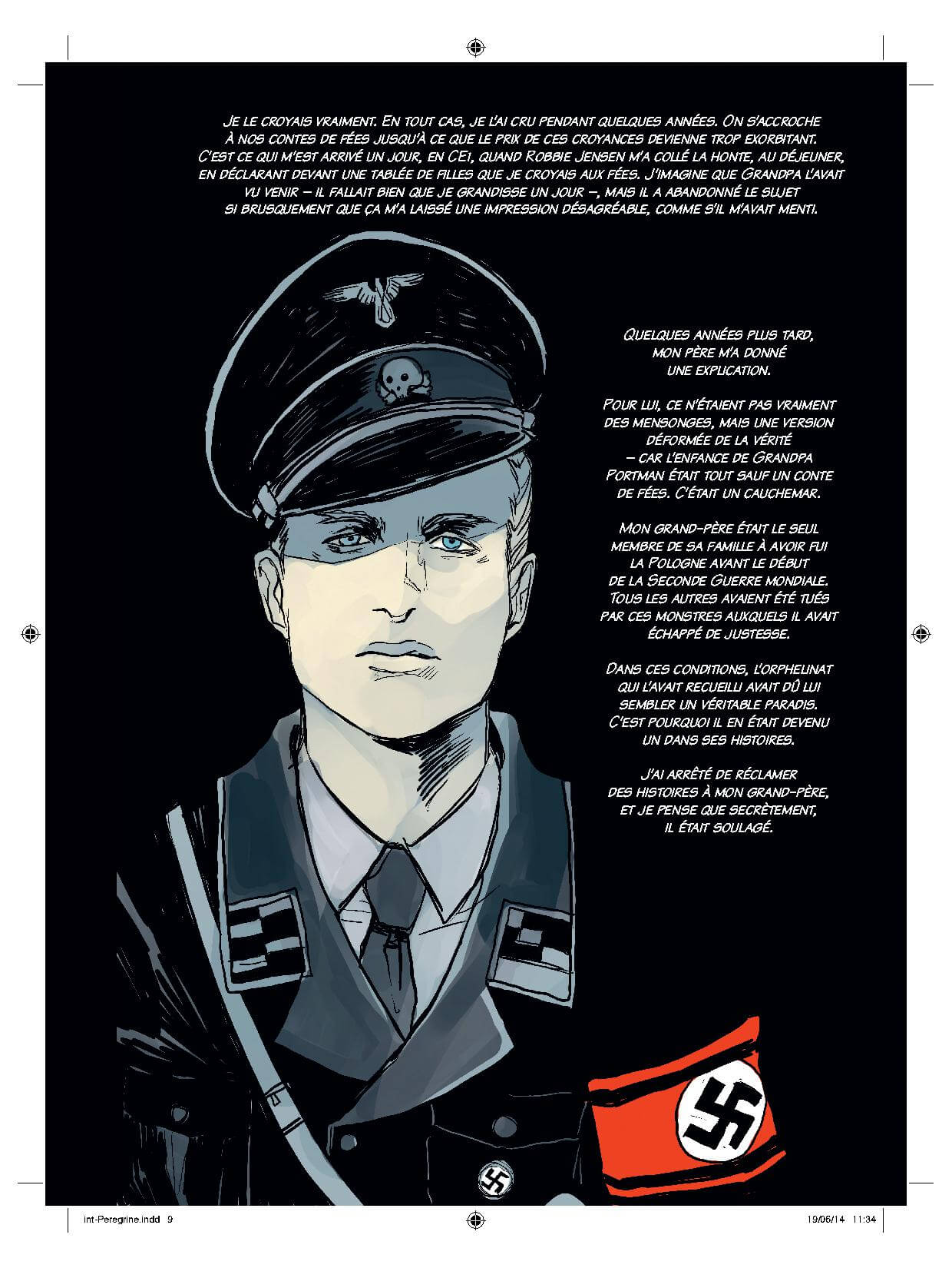 Miss Peregrine et les enfants particuliers est l’adaptation dessinée du roman paru en 2012 aux éditions Bayard Jeunesse. C’est Ransom Riggs qui s’est chargé lui-même de décliner son roman en album. Le récit angoissant de l’auteur américain est construit comme un très bon thriller fantastique. Précis et d’une extrême efficacité, il a pour cœur de cible les adolescents dès 12 ans. Tous les ingrédients sont réunis pour accrocher ce lectorat : un jeune héros, timide, rêveur et peu intégré, en quête du passé de son grand-père ; un suspense angoissant ; un monde parallèle peuplé d’êtres mystérieux ayant des pouvoirs magiques et une lutte pour que leur monde perdure. Alors que tout le monde pensait que le vieil homme divaguait lorsqu’il racontait des histoires, le lecteur apprend que tout n’est pas que fantaisie.