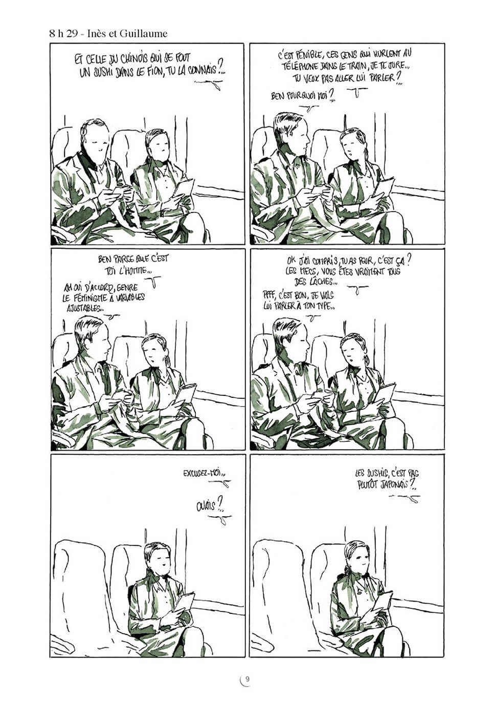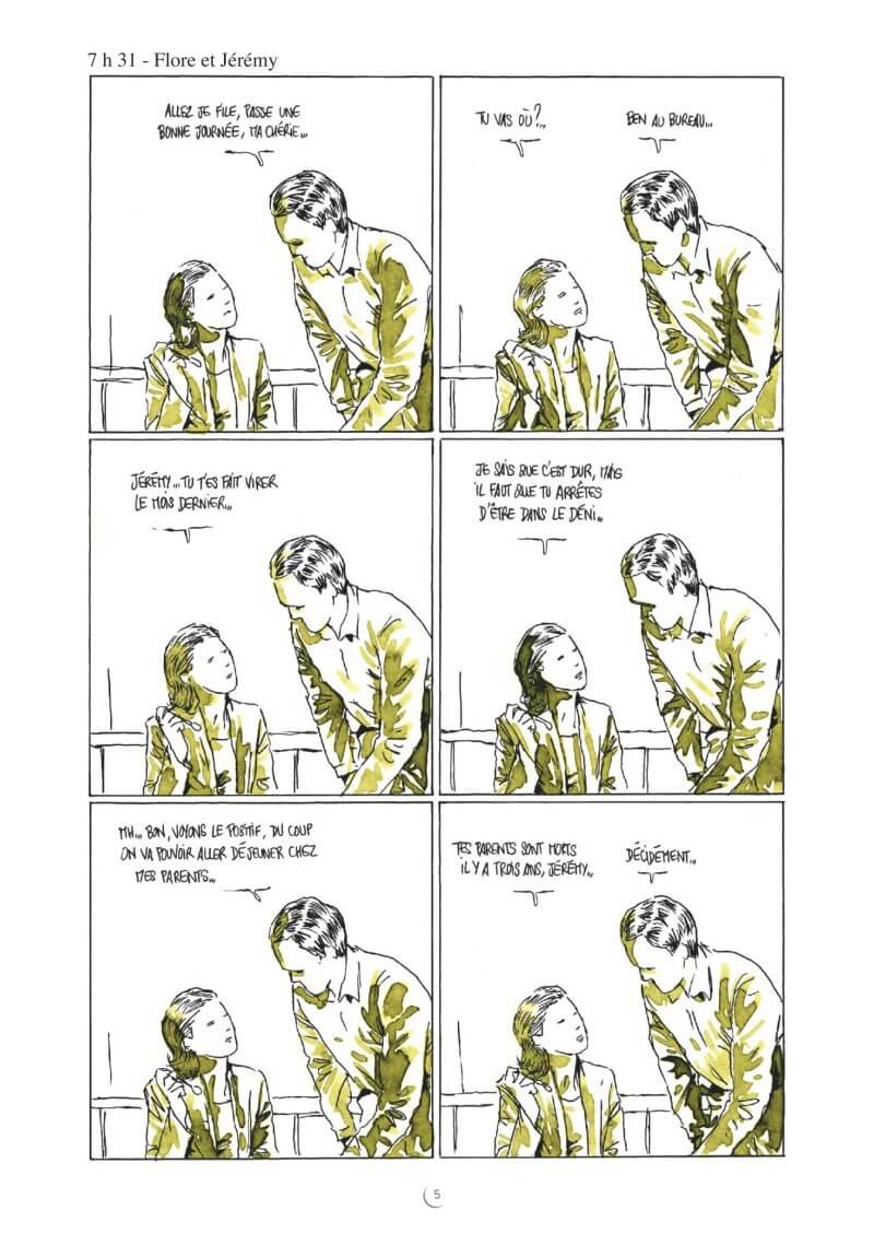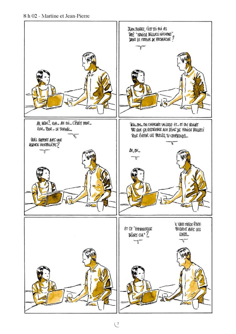 Dans un format ultracourt et utilisant une teinte différente pour chaque histoire, l’auteur de Zaï, zaï, zaï zaï et de Et si l’amour c’était aimer ? réussit souvent à faire mouche : dans la cuisine, sur l’oreiller, à la plage, au salon, il multiplie les scènes humoristiques.