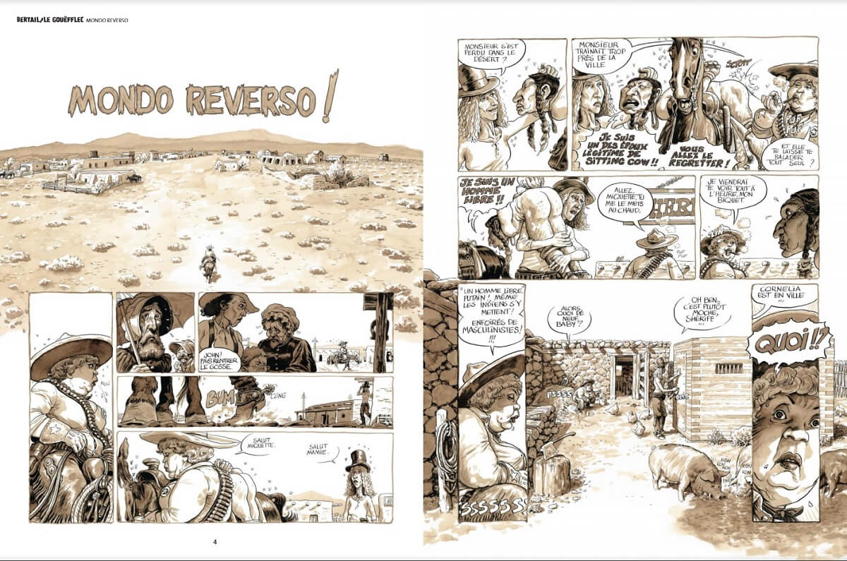 Et si les genres femme et homme étaient vraiment inversés dans l’Ouest Américain ? Arnaud Le Gouëfflec et Dominique Bertail se sont amusés à échanger leur place dans Mondo Reverso, un western original, étonnant et détonnant aux éditions Fluide Glacial.