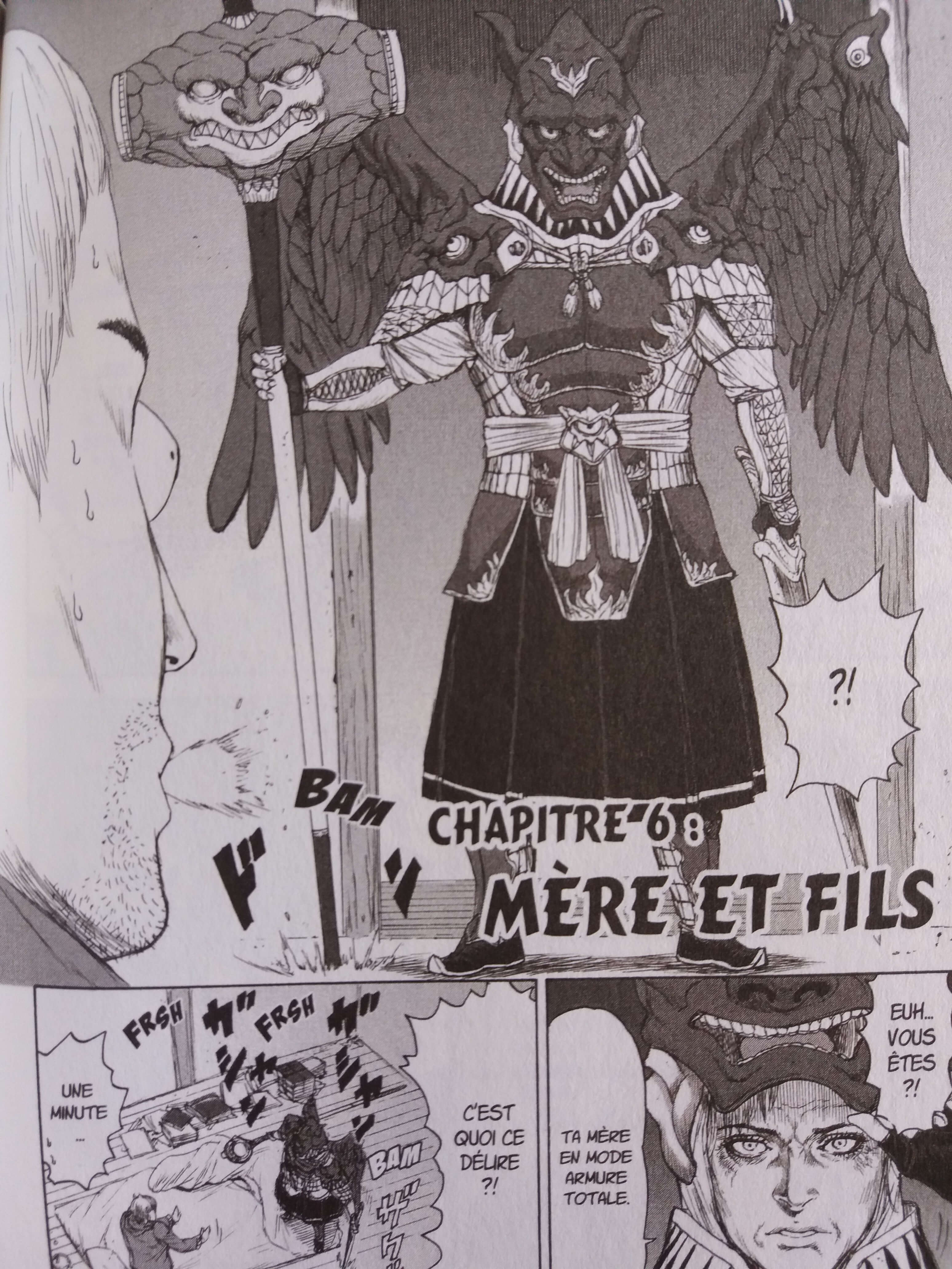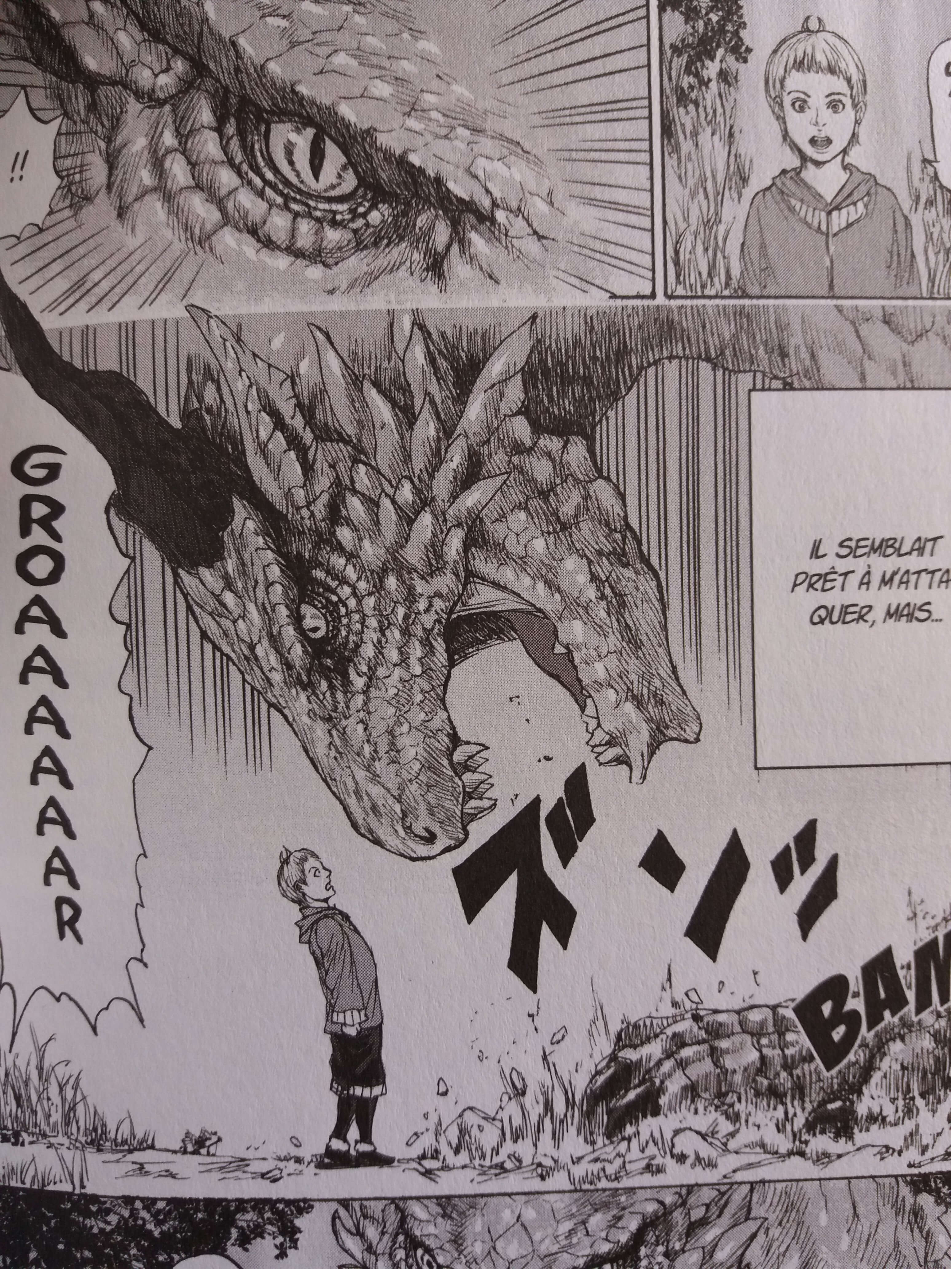 Monster X Monster se veut à l’origine comme une parodie déguisée, le bestiaire, les armures et l’univers dans lequel évolue les protagonistes sont totalement inspirés de Monster Hunter. Le premier tome nous présentait des scénettes comiques, entre procrastination et flemmardise nous suivions notre héros dans son quotidien. Chaque chapitre était un stand alone et avait un début et une fin, jusqu’à ce qu’un fil rouge apparaisse changeant au passage la narration de l’aventure.
