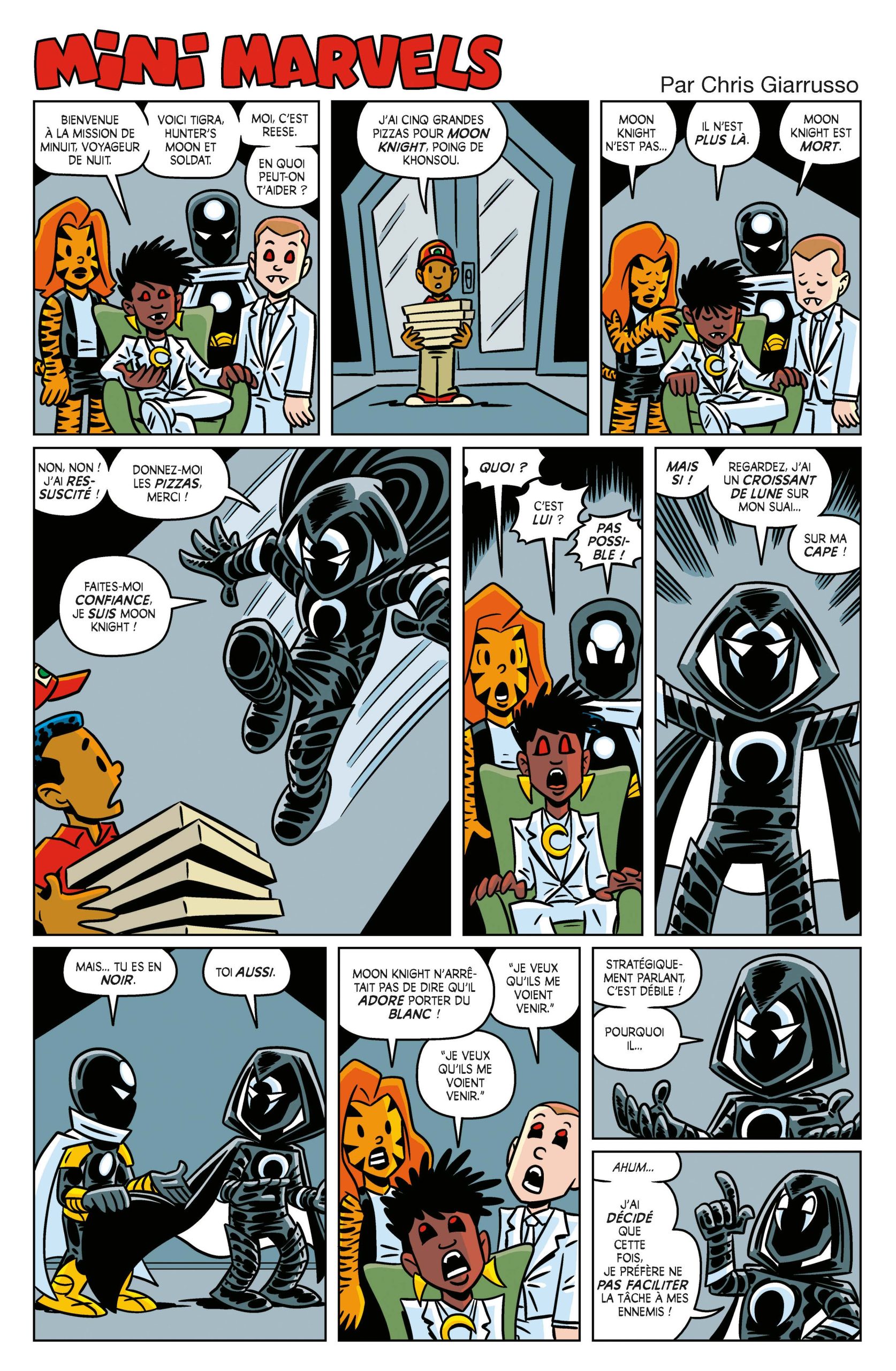 Pour l’anecdotique, on retiendra les Mini Marvels de Chris Giarrusso, version parodique qui se moque des multiples versions de Moon Knight, existantes ou potentiellement à imaginer. C’est de l’humour, mais c’est efficace.