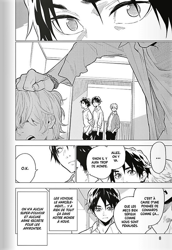 C’est ce que Yuya se répète en boucle : « Si Kaneshiro s’en est prit à Naoto, c’est la faute à pas de chance ». « Heureusement que ce n’est pas tombé sur moi ». C’est cette indifférence volontaire que Yuya ne supporte plus. Il sait qu’intervenir va lui apporter des problèmes, mais il sait aussi que s’il n’intervient pas, il le regrettera toute sa vie. Alors ce soir du 25 septembre, il fait ce geste qu’il aurait dû faire des mois plus tôt. Il tend la main.