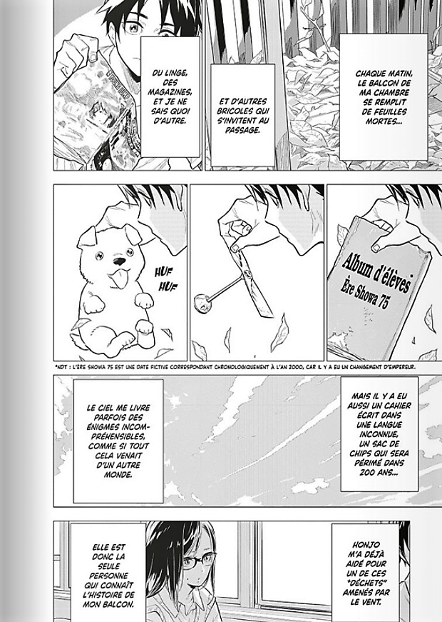 La maison de Yuya Matsuda se situe au pied d’une colline. Si bien que le vent balaye en continu la façade du premier étage. Tous les matins, Yuya jette par dessus la rampe de son balcon toutes les feuilles mortes déposées là pendant la nuit. Les feuilles, mais aussi des pétales de cerisiers en plein automne, un album photo des années 2000, des magazines, du linge, parfois des pulls à quatre manches. Un jour, Yuya a même retrouvé un chien accroché à sa rambarde.