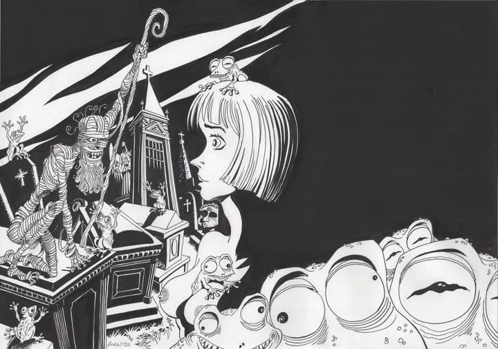 Résumé de l’éditeur : Immersion garantie dans un univers unique : des personnages aussi bizarres que fascinants, des destinées absurdes, un brin d’horreur et une bonne dose d’humour plus noir que noir. Le style graphique de Foerster ne peut pas laisser indifférent, l’utilisation qu’il fait du N&B donne une force indéniable à son dessin et lui permet d’instaurer une atmosphère inquiétante des plus efficaces dans des décors hypnotisants proches du style expressionniste.