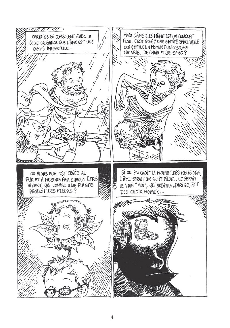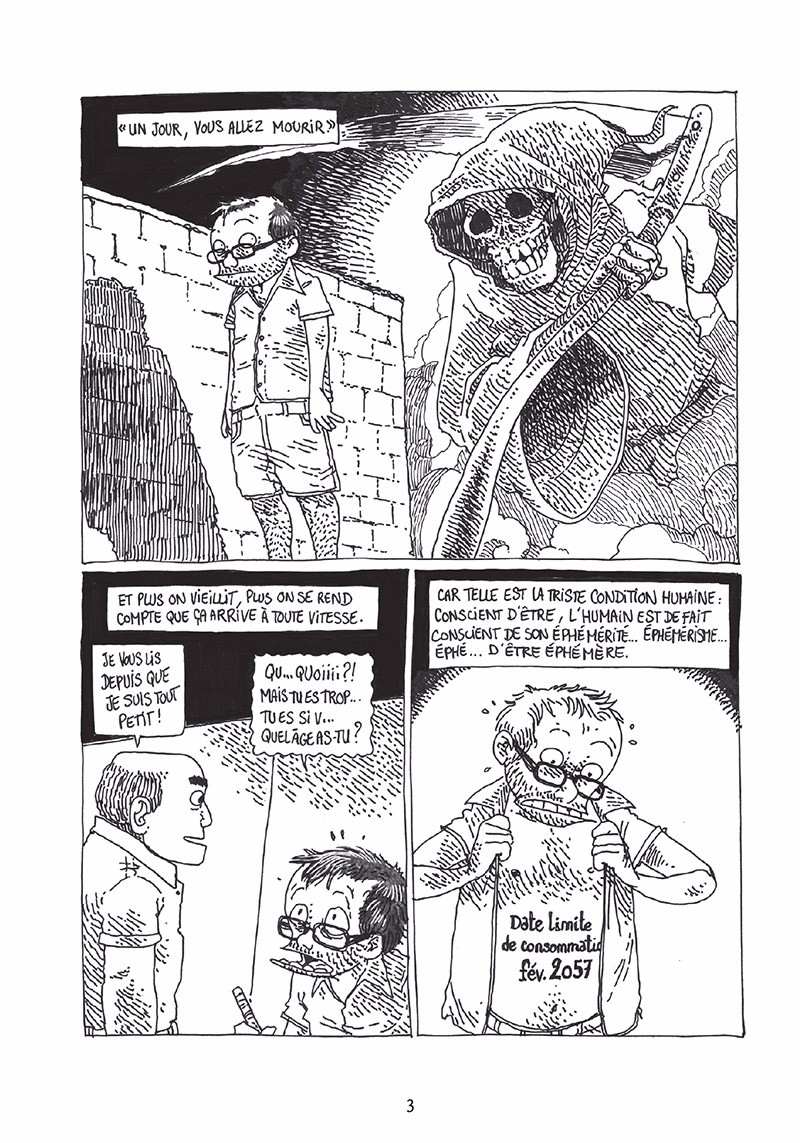 Résumé de l’éditeur : Y a-t-il une vie après la mort ? Y a-t-il un Dieu ? Quelque chose après ? Ou sommes-nous juste une succession de phénomènes physiques régis par les lois de la physique, aussi dérisoires qu’un lichen accroché à son rocher ? Boulet nous guide sur le chemin de la connaissance avec son humour habituel.
