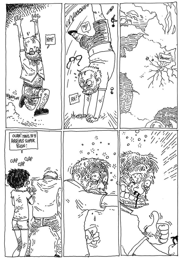 Il faut souligner que Boulet est un dessinateur mutant (Comixtrip vous a présenté son blog en 2014). Né en 1975 à Meaux, de son vrai nom Gilles Roussel, il est déjà à la tête de plus d’une trentaine d’albums. Après des études aux Beaux-Arts de Dijon, il intègre les Arts Décoratifs à Strasbourg et fait la connaissance de futurs auteurs de bandes dessinées notamment Nicolas Wild (Ainsi se tut Zarathoustrat, La Boîte à Bulles), Erwann Surcouf (pouvoirpoint, Vide Cocagne), Lisa Mandel (La fabrique pornographique, Casterman) ou encore Reno (Aquablue, Delcourt).