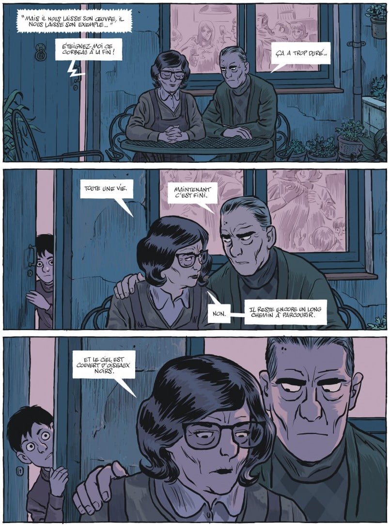 Résumé de l’éditeur : Jaime Martin avait 9 ans le 20 novembre 1975, le jour de la mort de Franco. Alors que sa famille en liesse sabrait le champagne, dans la cuisine, les mots de sa grand-mère résonnent encore aujourd’hui : « Il y a un long chemin à parcourir et un ciel plein d’oiseaux noirs ». A travers ce récit autobiographique, l’artiste retrace sa trajectoire dans l’Espagne de l’après dictature en miroir d’une génération portée par l’enthousiasme de la démocratie et sévèrement frappée par la crise économique. Jaime s’en sort grâce au dessin, sa passion depuis l’enfance. Ado, sa carrière d’auteur de BD se décide quand il découvre le rock et Métal Hurlant. L’âge adulte vient ensuite creuser les distances avec son ancienne bande tandis que le système libéral fait des victimes chez ses vieux amis. Après « Jamais je n’aurai 20 ans », sur la jeunesse de ses grands-parents engagés dans la guerre civile espagnole et « Les guerres silencieuses » sur la jeunesse de son père pendant son service militaire dans l’Espagne franquiste, ce témoignage personnel vient clore le cycle de ces chroniques familiales et sociales. Fort de l’histoire des générations qui l’ont précédé, le dessinateur porte son regard lucide et plein d’humanité en invitant à croire en l’avenir et aux rêves toujours possibles.