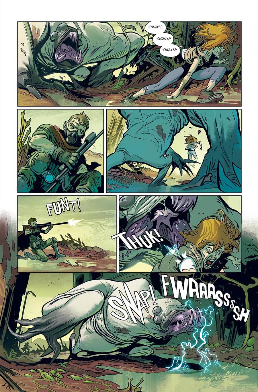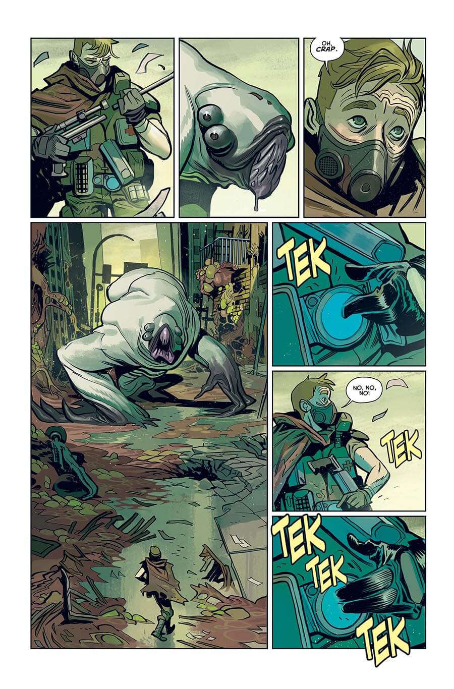 Dès les premières pages, le lecteur se retrouve au cœur de Oblivion avec Nathan et les créatures géantes. Pas le temps de respirer, le scénariste de Outcast (avec Paul Azaceta) enchaîne les actions.
