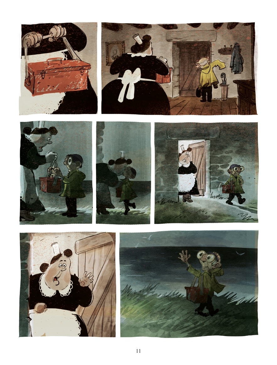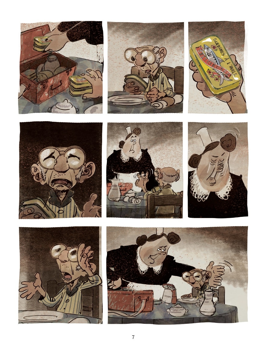Le récit muet de Wilfrid Lupano est merveilleux. Construit comme une belle fable contemporaine, il multiplie les rebondissements, les situations cocasses et rocambolesques, à travers 200 pages d’une douce-folie. Le lecteur est happé et sera accroché jusqu’à la fin par cette histoire singulière et ô combien sensible. Entre quête pour retrouver son amour et une grande dose d’humour, il mène sa barque d’une manière forte habile. Pas de récitatifs, pas de dialogues, voilà qui aurait pu être une grande difficulté mais qui se transforme en une très grande force pour cet album. Cet Océan d’amour repose aussi sur des personnages touchants et à fort caractère. D’un côté, ce vieil homme frêle, aimant sa femme, proche d’une retraite méritée mais qui doit continuer de se lever chaque matin pour aller travailler. Sa profession, son petit bateau et son apprenti, il les aime. Ce qu’il déteste : les boîtes de sardines. De l’autre, sa femme, une bigouden bien portante, aimant faire des crêpes et travailler la dentelle. Lorsqu’elle apprend que son époux n’est peut être pas mort, elle part de suite, sans réfléchir jusqu’à La Havane. Ce conte, c’est aussi une très belle histoire d’amour d’un vieux couple modeste, habitant une petite maison en Bretagne.