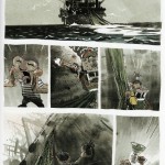 Par ce très bel album, le scénariste des Vieux Fourneaux (avec Cauuet, Dargaud) dénonce aussi les dérives contemporaines liées à la mer. D’un côté, un marin-pêcheur artisan sur son bateau à taille humaine, écoutant la mer et la respectant. De l’autre, les géants de mer, cargos de la pêche hauturière, abîmant les fonds marins, transformant directement dans ses cales les poissons, rejetant les restes dans la mer et la polluant. Ces entités, sans identité, rassemblent des centaines de marins à bord, payés au lance-pierre. L’auteur du Singe de Hartlepool (avec Moreau, Delcourt) fustige aussi la pollution des océans, pour certains, devenus de véritables poubelles ; comme lorsqu’il a navigué sur les eaux du Canyon du Sumidero au Mexique. Il s’en inspirera pour les scènes dans la Mer des Caraïbes.