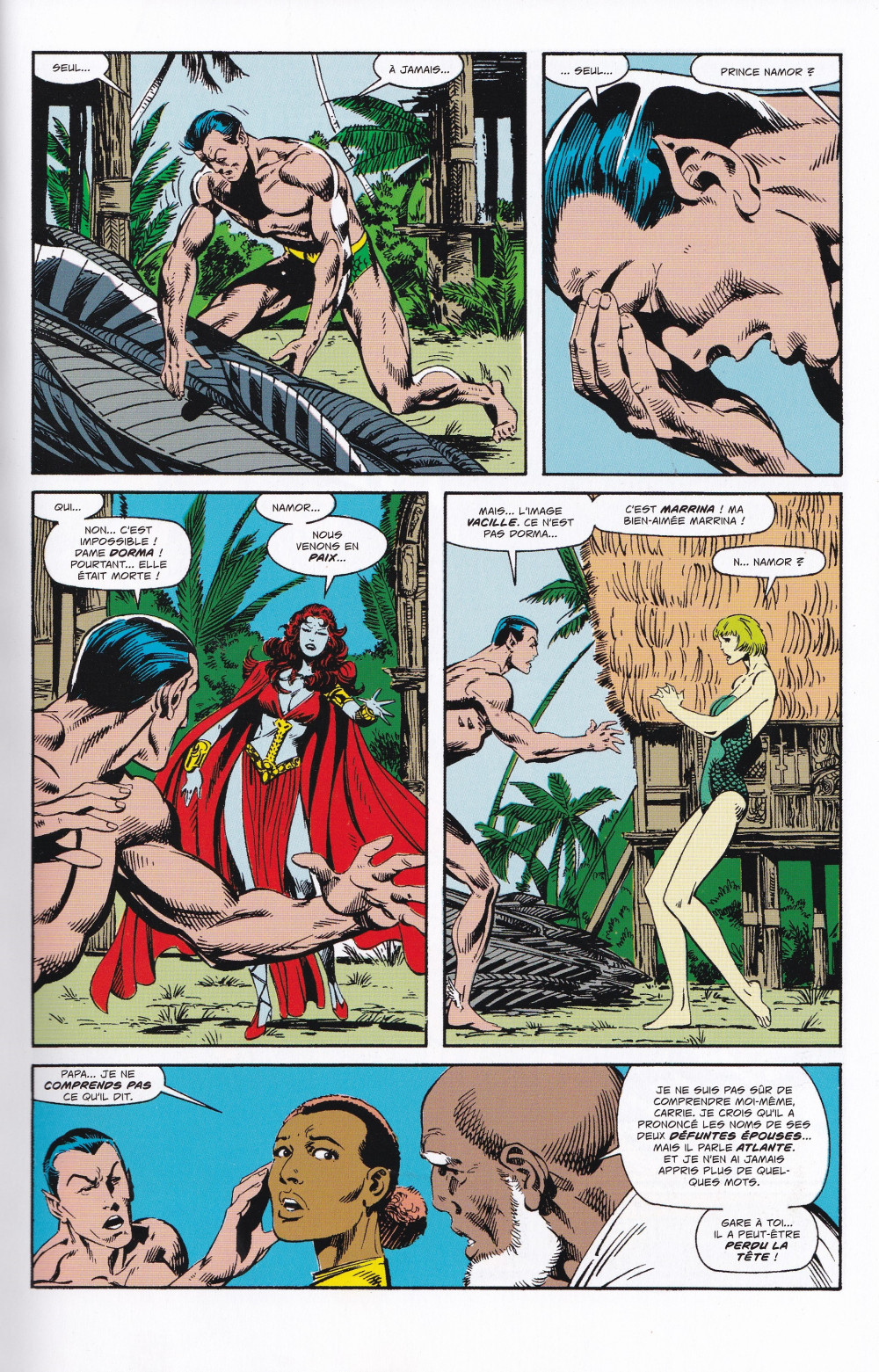Résumé de l’éditeur : Namor affronte un monde encore plus mystérieux et dangereux que les fonds marins : celui des grandes corporations ! Bien décidé à se faire une place dans le monde des affaires de la surface, le Prince des Mers affronte les diaboliques jumeaux Marrs et doit répondre de ses nombreuses attaques sur New York. Il renoue également des alliances avec ses anciens amis des Envahisseurs et doit dénouer le mystère de la résurrection d’Iron Fist ! Et ça n’est que le début ! Au tout début des années 90, John Byrne, l’un des plus légendaires auteurs/dessinateurs de la galaxie Marvel (Alpha Flight, Fantastic Four), s’attelle à l’un des antihéros les plus charismatiques de la Maison des Idées. Tantôt ennemi du monde de la surface, tantôt allié des Avengers, Namor s’élance dans sa propre série. Byrne laisse ensuite la place de dessinateur à un autre grand talent, Jae Lee (Inhumans), tout en continuant à scénariser le titre.