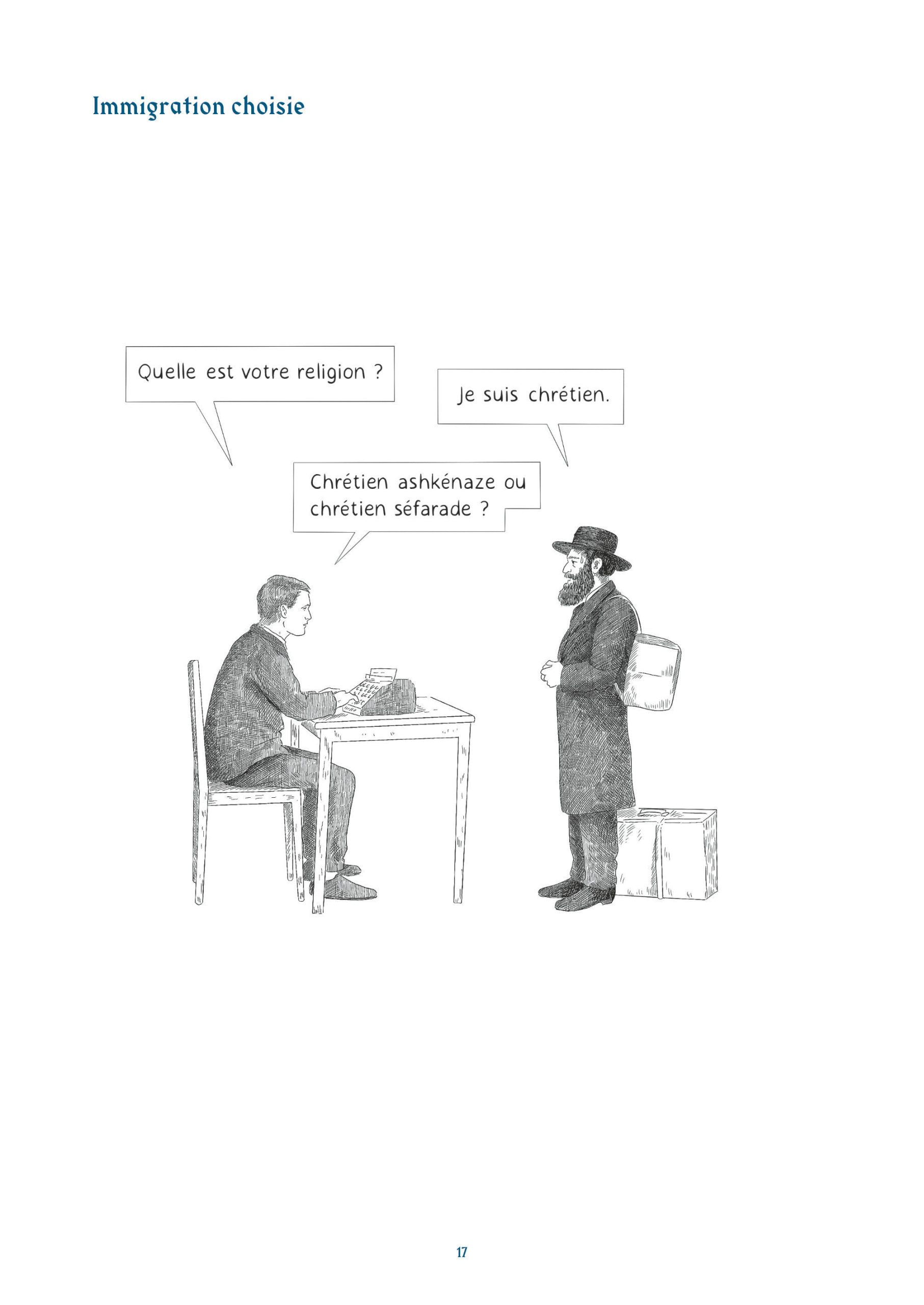 “Rions des Juifs, avec des Juifs (tant il est vrai que “rire de”, c’est “rire avec”). Amusons-nous de nos rabbins, de nos synagogues, de nos familles, coutumes, traditions, problèmes et autres dingueries intimes. Prenons plaisir à tourner en dérision nos névroses. Moquons-nous de nous-mêmes. Poursuivons l’œuvre de nos glorieux ancêtres.” [Ivan Jablonka]