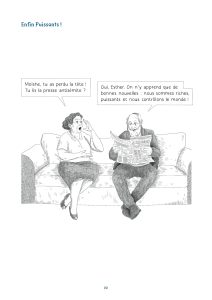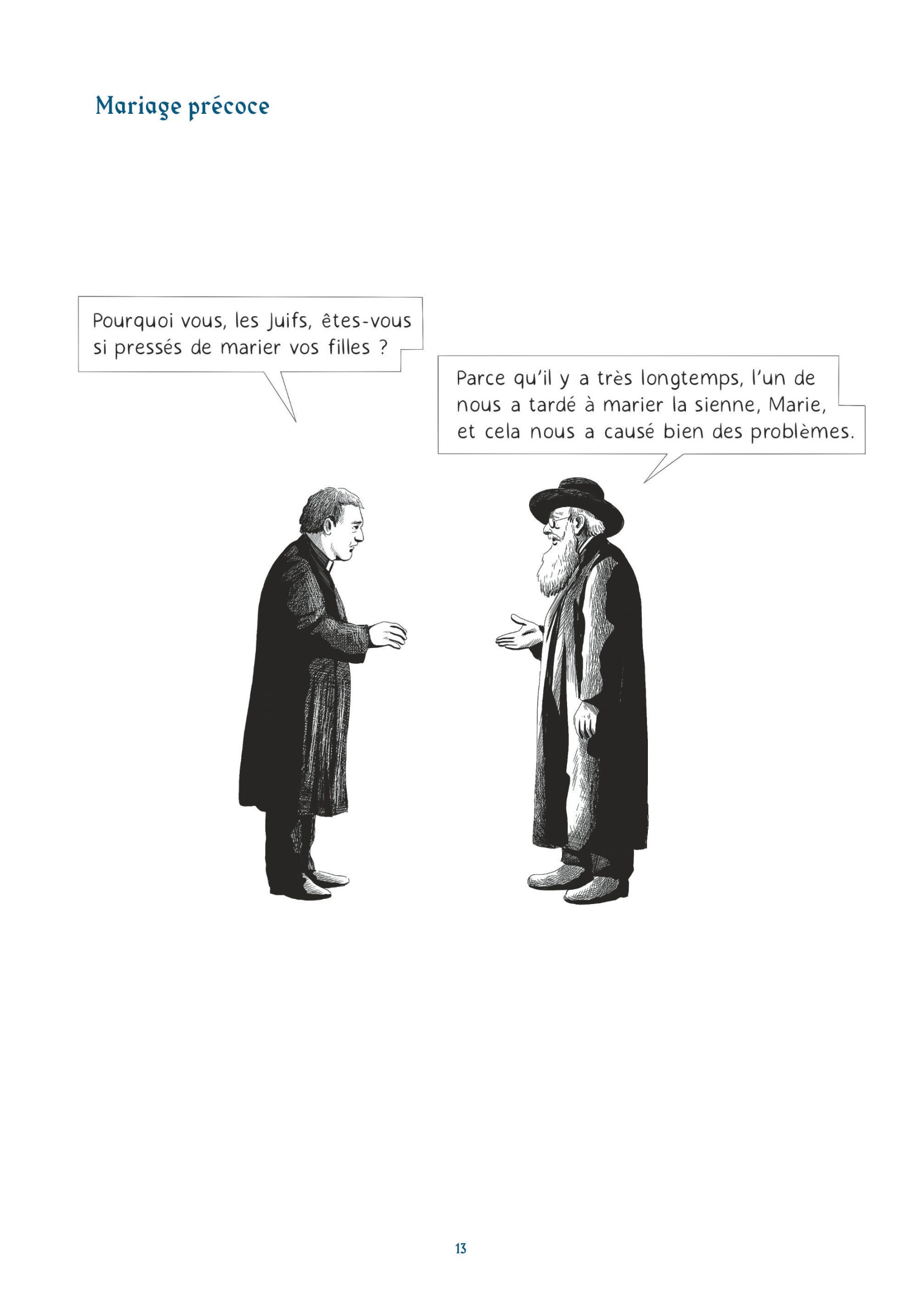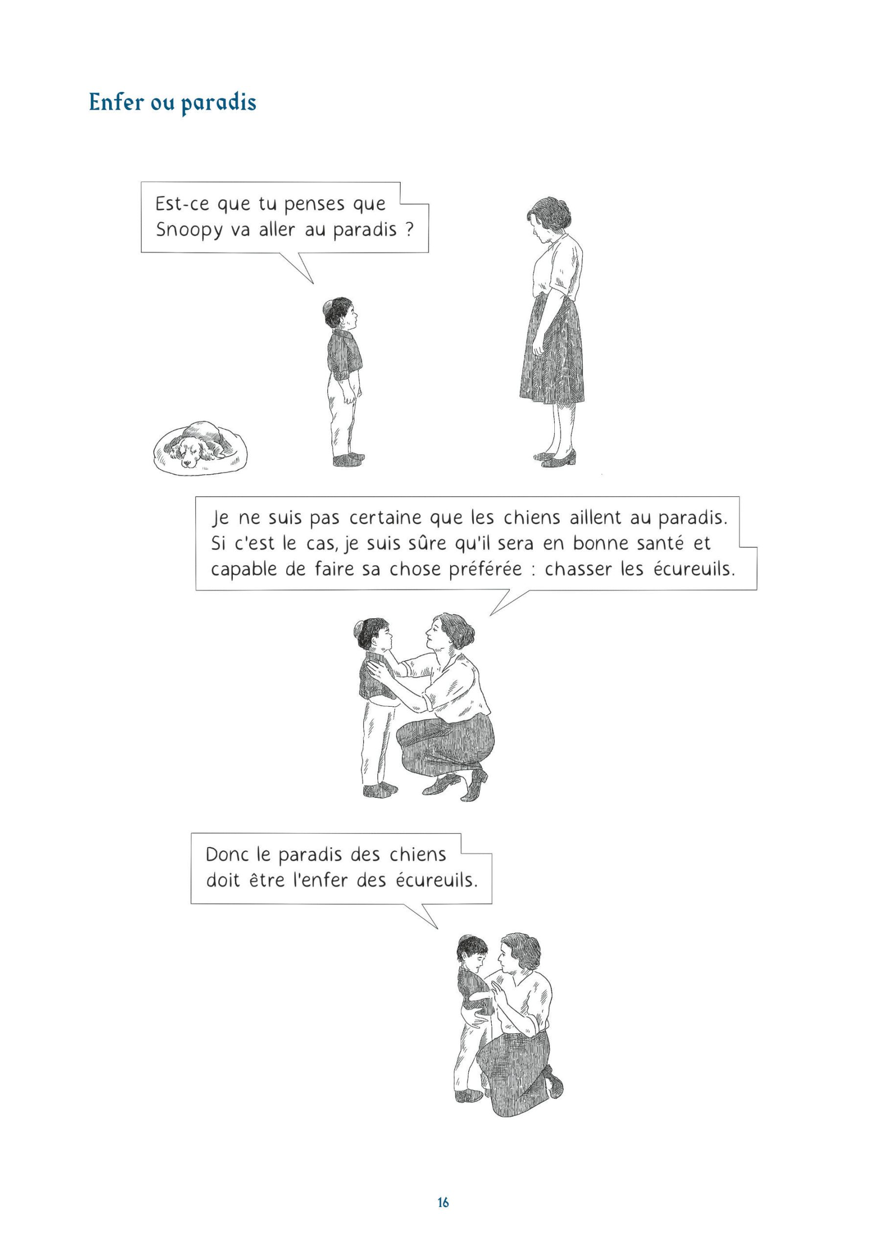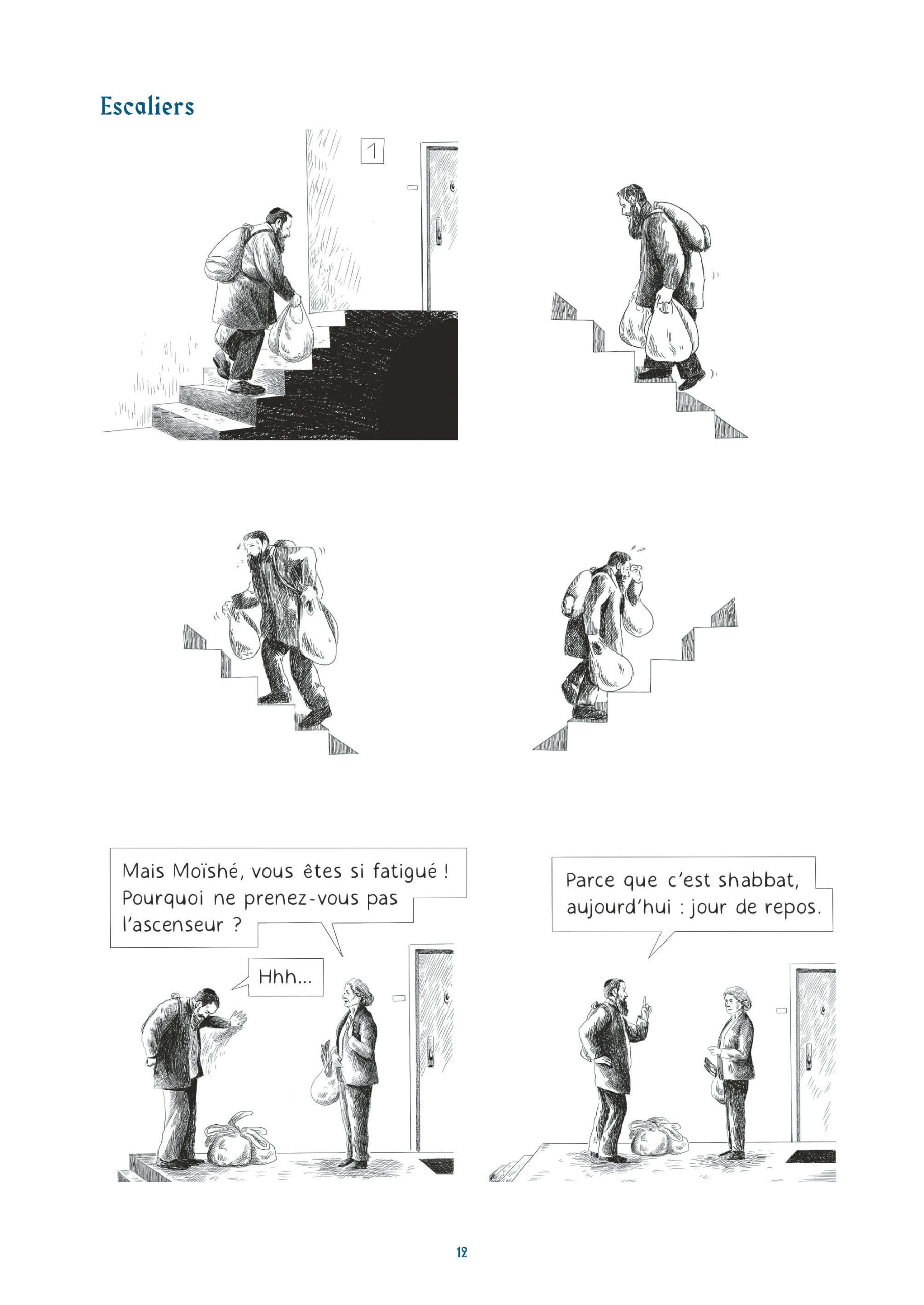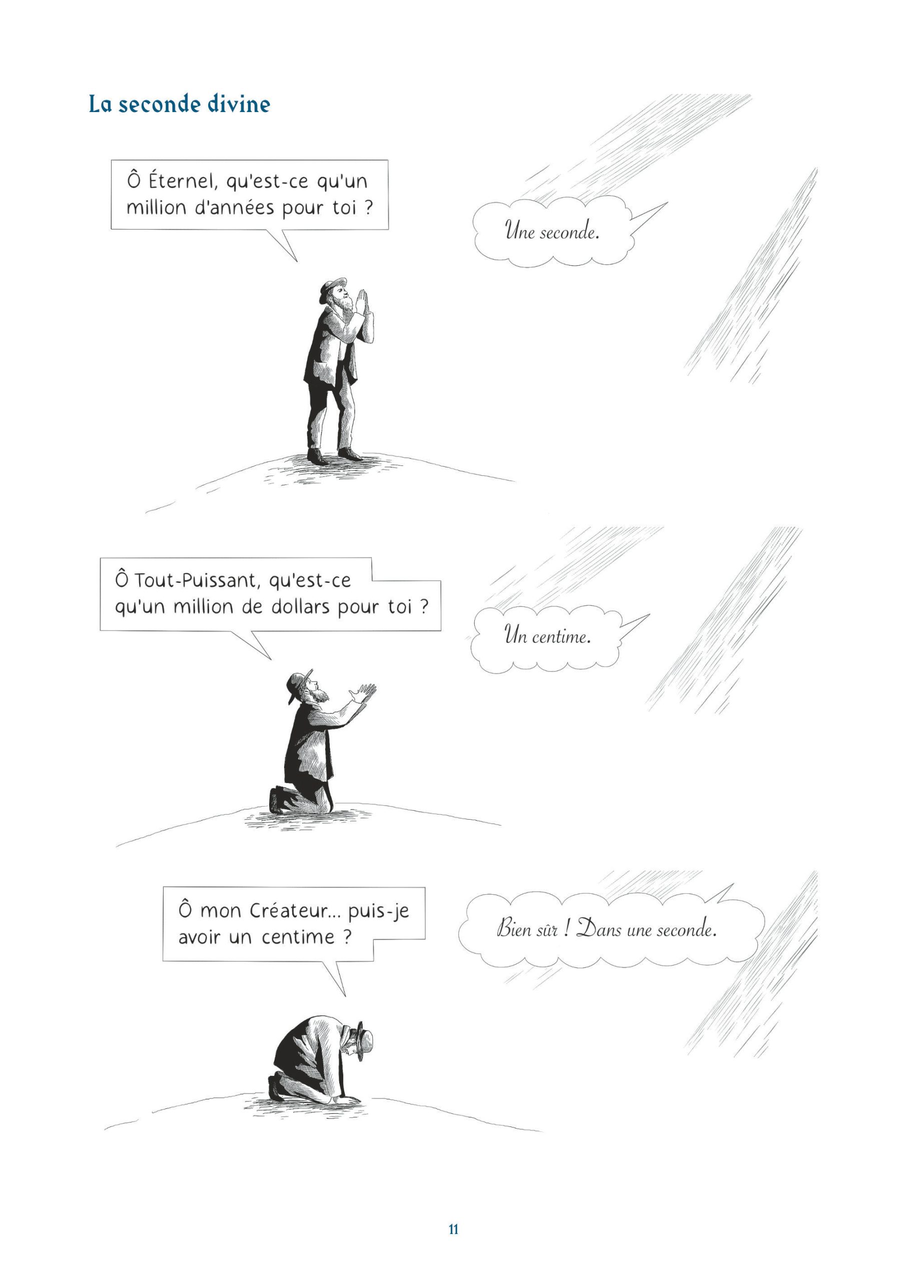 Les lecteurs naviguent ainsi dans des thématiques que l’on accole souvent à l’humour juif. On y retrouve des mères surprotectrices, des pères perdus quand ils parlent de leurs filles ou l’argent. Cet humour très absurde, sur un fil, mais aussi un humour très pragmatique, devant la mort, devant Dieu, devant un choix cornélien. Une réponse logique face à une situation précise.