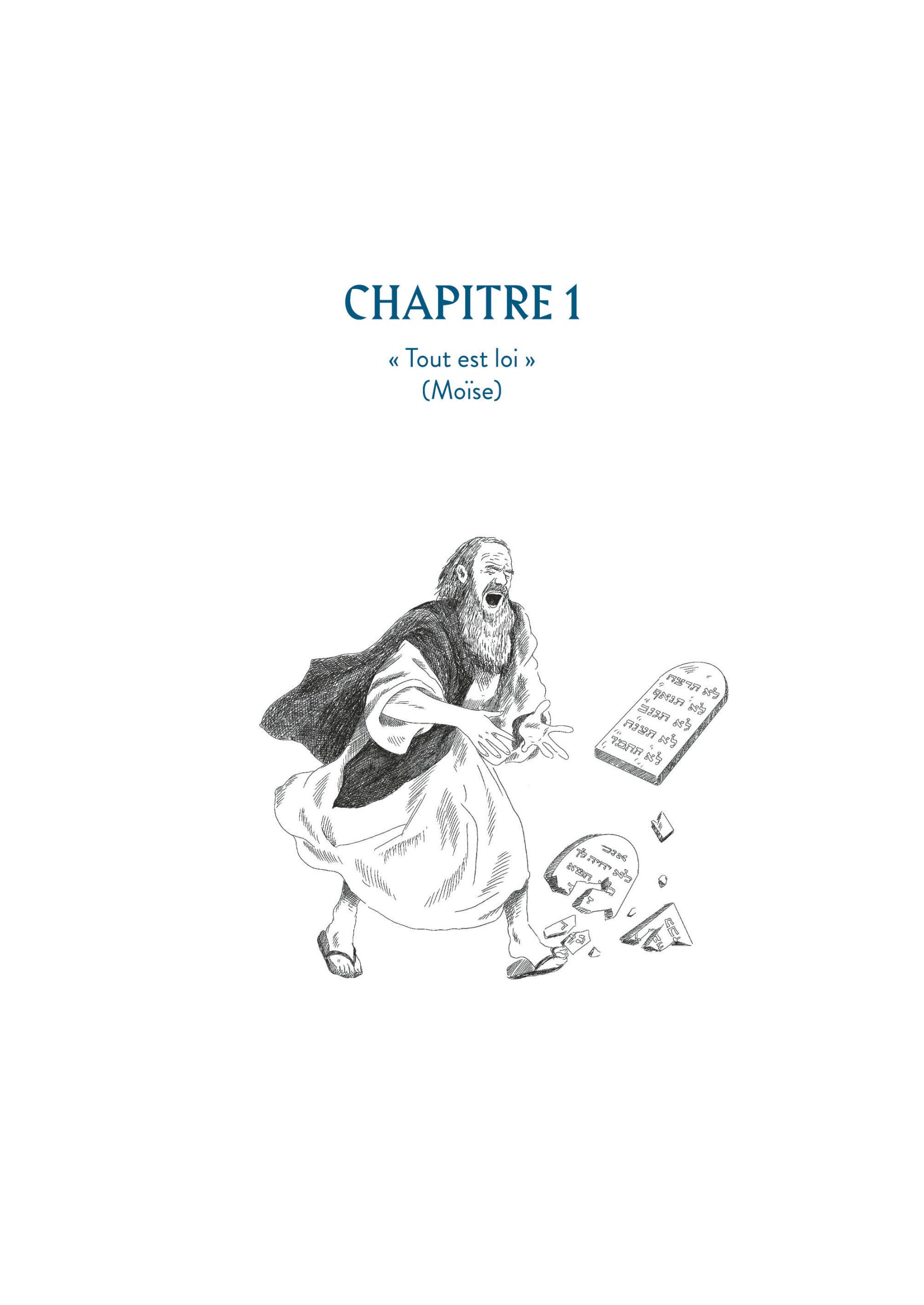 Pour regrouper ses gags, Constance Lagrange a choisi de les compiler dans des chapitres. Cinq au total : Tout est loi (Moïse), Tout est amour (Jésus), Tout est argent (Marx), Tout est psy (Freud) et Tout est relatif (Einstein).