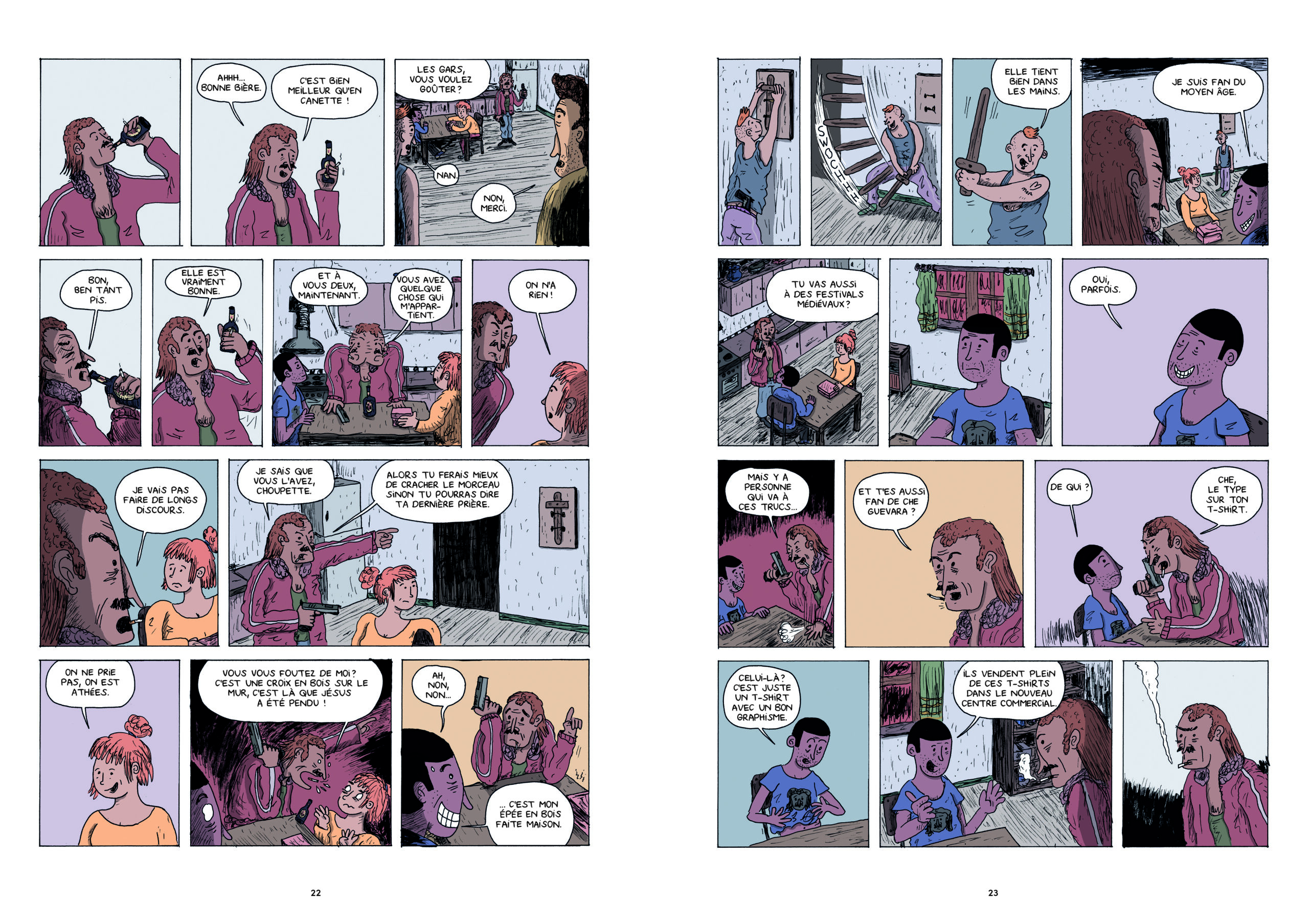 Bon, il y a quand même un point qui peut rebuter le lecteur, et il n’est pas petit. Le dessin est à positionner entre la BD alternative et la BD indépendante. Autrement dit, le trait tremble un peu, la composition graphique est souvent très simple, le coup de crayon austère voir un peu amateur. Tout cela manque quelque peu de maîtrise.