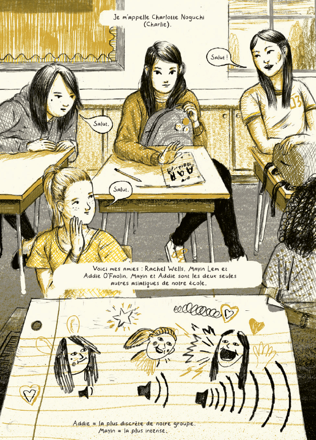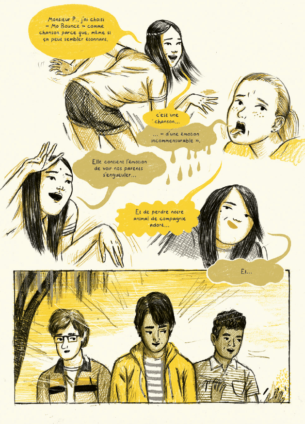 Opératique est une très jolie histoire sur l’adolescence. Kyo Maclear dévoile un récit doux et bienveillant sur cette période charnière. Pour cela, l’autrice torontoise imagine trois personnages qui vont se croiser et devenir amis.