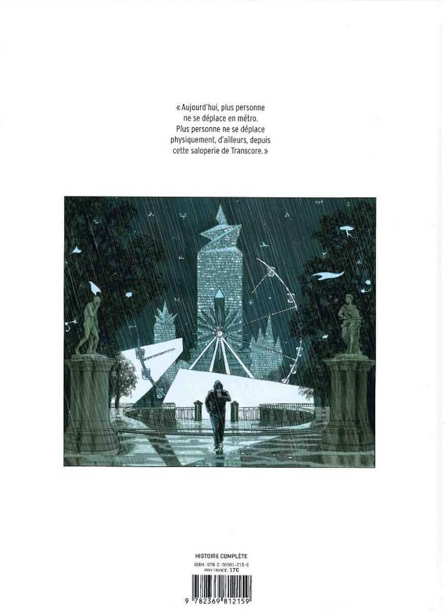 Résumé de l’éditeur : Paris, nous sommes en 2119, l’ambiance est futuriste mais quelques éléments du XXIème siècle perdurent. Le métro existe encore mais la plupart des personnes préfèrent se téléporter via la cabine « Transcore «. Tout un chacun est systématiquement scanné et reconnu dans les espaces publics et privés. Les clones, les drones et les hologrammes sont monnaie courante. Tristan Keys vit dans ce monde dont il rejette le plus possible la numérisation. Tel un marginal, il continue à prendre le métro, à marcher dans les rues, à l’inverse, sa compagne Kloé est une adepte des déplacements inter-continents via le Transcore. Au cours de ses déplacements à pieds, il constate assez vite des comportements préoccupants, des situations anormales. Que se passe-t-il vraiment dans ce Transcore ? Est-ce une simple téléportation pour ses utilisateurs ?