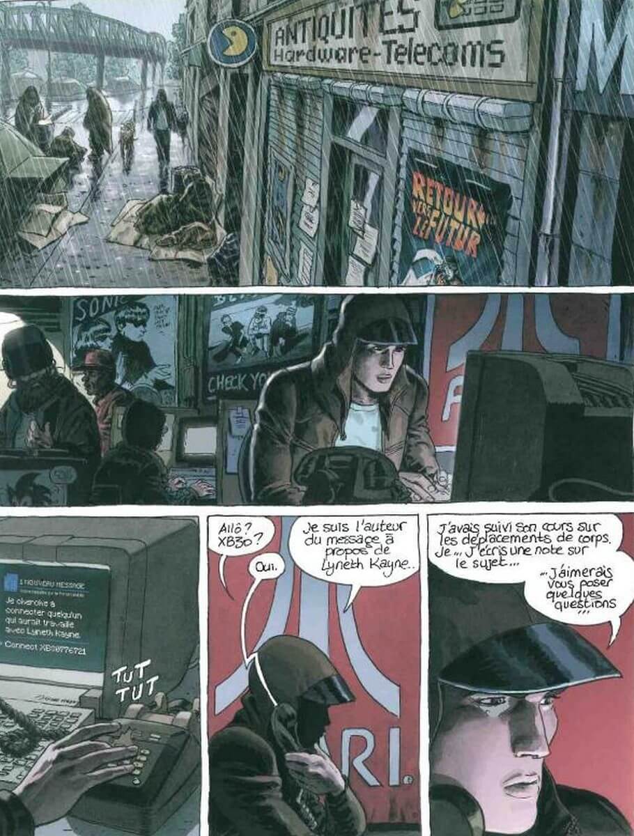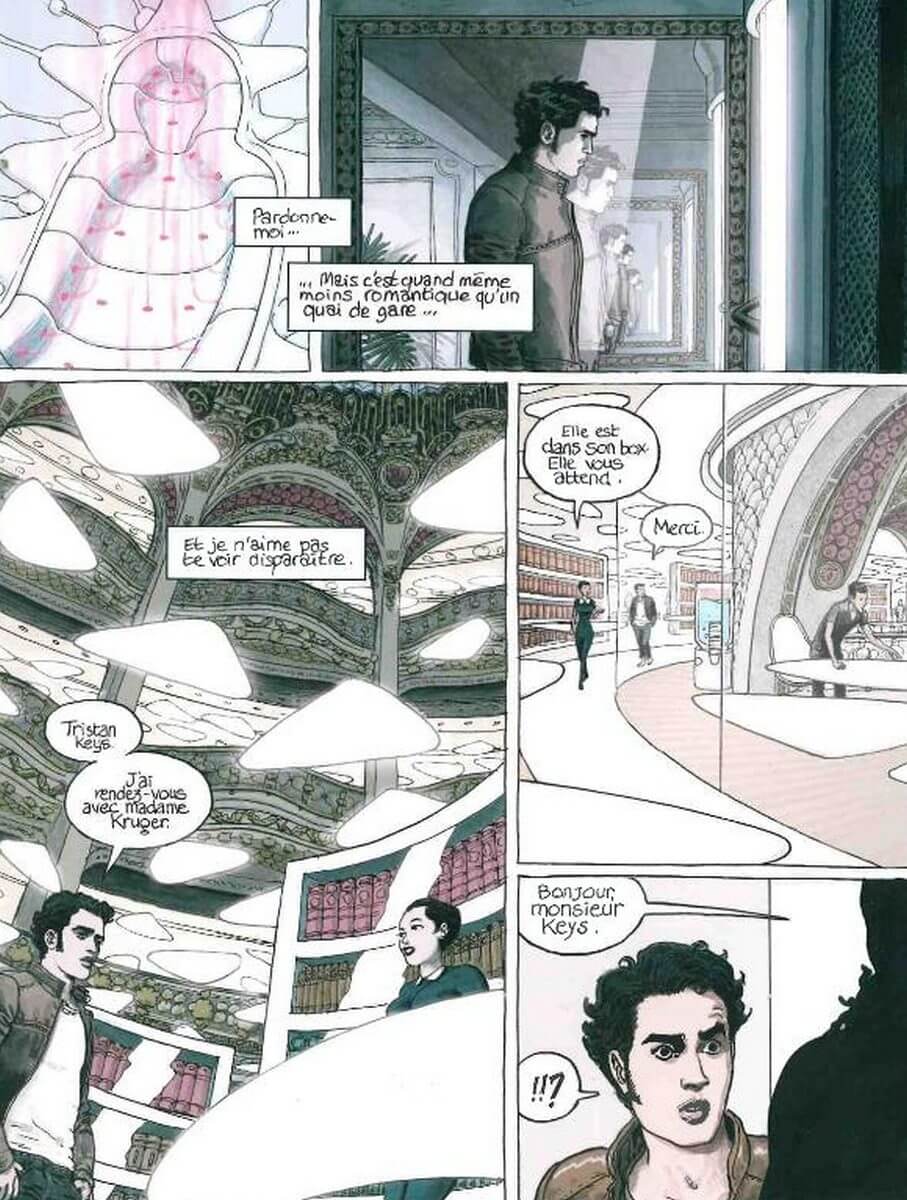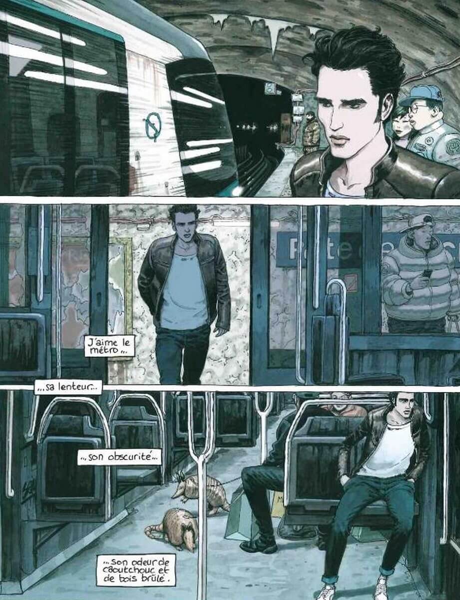 Un petit drone enregistre par reconnaissance faciale l’identité de Tristan Keys avant qu’il ne lui autorise à entrer dans le métro. Dès la première planche, l’attitude réfractaire du personnage principal est sans équivoque. Tristan vit dans un siècle qui ne lui correspond pas. Alors, même s’il ne peut éviter d’y croiser des personnes au comportement étrange, des tatous en guise d’animal de compagnie, ou de rares touristes hyper-connectés, il se réfugie dans la voie ferrée souterraine. Un endroit qui le réconforte.
