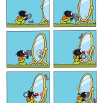 Résumé de l’éditeur : Petit Poilu explore les coulisses d’un théâtre de marionnettes. Il y rencontre les mains de Nono le marionnettiste qui, très inspiré, fabrique une marionnette à l’image de notre Petit Poilu fort intrigué… Et plus encore quand ce double de chiffon se met à copier toutes ses attitudes, provoquant chez notre petit héros des réactions pour le moins étonnantes ! Une fable muette et burlesque qui parle de l’image de soi, pour les tout jeunes lecteurs, dès 4 ans.