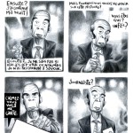 L’auteur de cet Ovni graphique, Flornet Chavouet, est un familier du japon où il séjourne régulièrement. Ses deux précédents albums, « Tokyo Sanpo « (2009 ) et Manabeshima ( 2010 ) en témoignent. Au sujet de cette dernière livraison, il confie: » Je dis que c’est un polar, mais je n’en suis pas sûr « . Nous non plus. On ne cherche pas à tout comprendre. On se laisse porter par la forme ultraléchée de ce livre un peu hors normes…