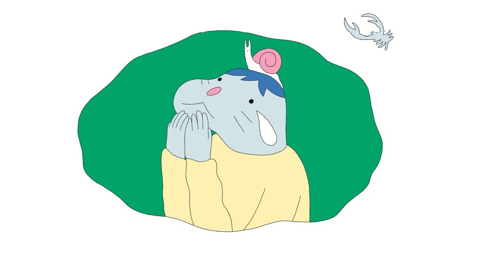 Pluie, c’est comme un petit garçon timide et toujours sanglotant, que l’on aimerait réconforter. Surtout que plus il pleure, plus ses bras s’allongent. Pourquoi ? On ne sait pas ! Mais peu importe, sa maladresse à cause de ses bras dont il ne sait pas quoi faire, nous émeut. Souvent, les enfants (voire les adolescentes) ne sont pas au mieux dans leur corps. Ils peuvent parfois être gauches. Problème d’équilibre, de latéralité, de poids… Rien n’est simple lorsqu’il faut mouvoir son corps dans l’espace. C’est en choisissant une créature fantastique un peu animale que Pauline Morel peut aborder cette thématique.