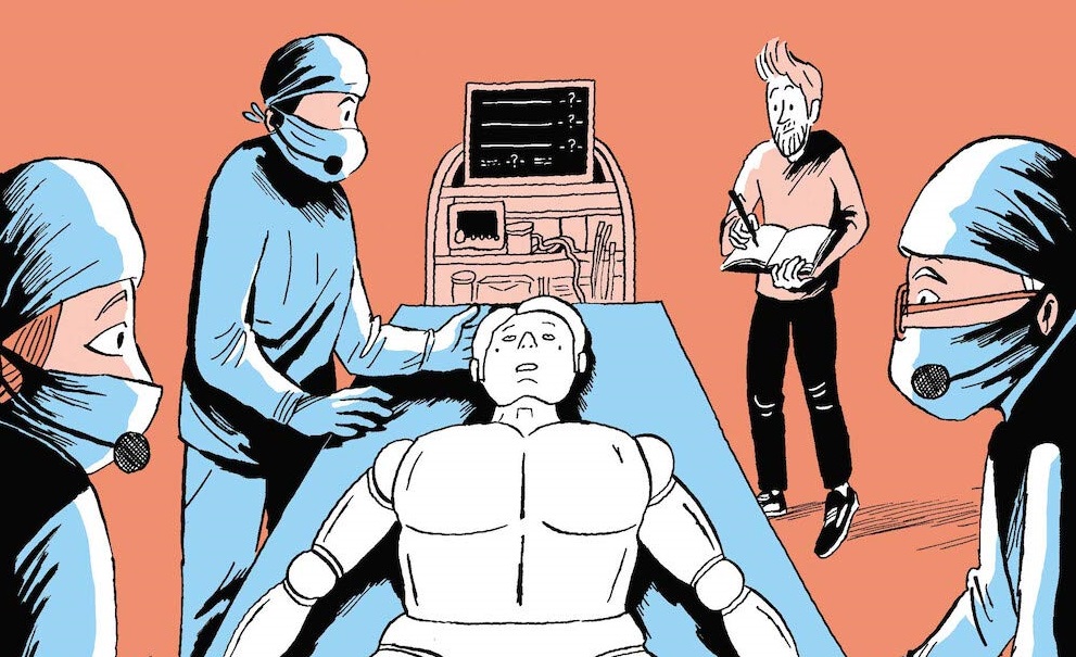 Théo Calméjane, auteur de bande dessinée, ne savait pas où il mettait les pieds lorsqu’il accepta une résidence dans l’unité de simulation de santé d’Angers. Endroit méconnu du grand public, il permet aux soignants de se former tout au long de leur carrière. Plongée dans l’univers fascinant de Plus vrai que nature, entre mannequin en plastique, pinces reliées à des ordinateurs et squelettes. Surprenant !