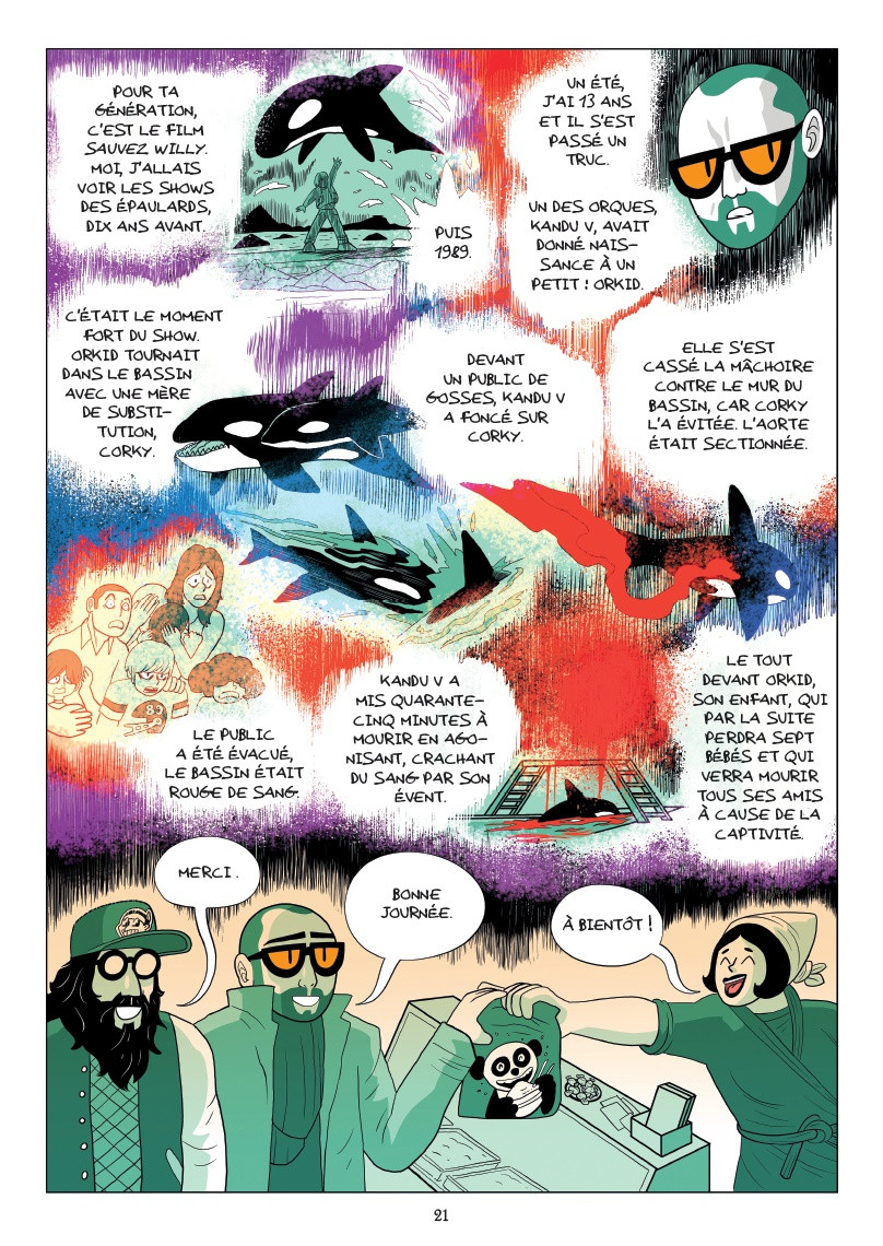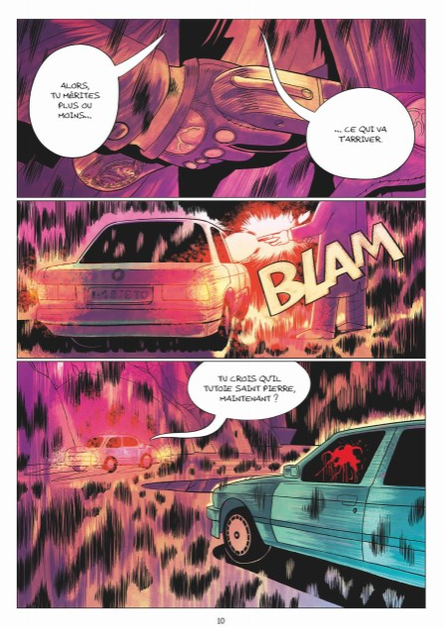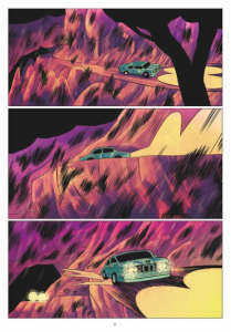Si le thème est noir, les planches de Possessions, elles, ne le sont pas toujours. A l’image de cette couverture, Alexis Bacci utilise des couleurs pop acidulées pour équilibrer son propos. Jaune, rose, orange. Les ambiances ainsi que les styles sont variés et les cauchemars d’Antonio laissent libre cours aux scènes mystiques. Plus de 400 pages que j’ai eu du mal à lâcher tant le récit est prenant et le dessin emballant.