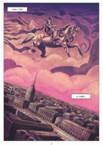 Résumé éditeur : « Ne jamais aller à Turin, à aucun prix ». Franz Kafka Antonio Ventimila est perdu dans une existence parisienne vide de sens. Un soir, il plaque tout, sans prévenir personne, direction l’Italie. Un accident de la route le fait échouer dans un hôpital turinois où il croise le chemin d’un romancier fantasque qui lui propose de l’assister pour son prochain livre : l’ouvrage de référence sur la ville. Réputée pour sa dimension ésotérique, Turin est une des trois capitales de la magie blanche et une des trois capitales de la magie noire ; le théâtre d’un ballet démoniaque, entre légendes urbaines, faits divers mafieux et vestiges obscurs de l’Histoire italienne. Pour Antonio, démêler les histoires criminelles de son enquête sera un chemin sinueux. Il commence par une rencontre : celle de Chiara, une charmante réceptionniste qui lui révélera ses mystères, tandis qu’Antonio affrontera les démons de la ville en même temps que les siens. Parmi eux, un deuil infernal et l’héritage de l’homme le plus maléfique du monde… Avec un style reconnaissable et un sens inné du rythme, Alexis Bacci revient avec un polar ésotérique explosif, où le mystique côtoie le crime. Dans son album le plus personnel, l’auteur se dévoile à travers l’incarnation d’une lutte contre les forces du mal. Possessions est un roman graphique dense, haletant et intimiste, teinté de fantastique pour une quête chargée de symbolisme.
