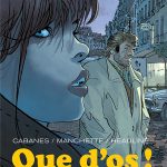 À la faveur de la création de leur nouveau label, Aire Noire, dédié au polar, les éditions Dupuis ont entrepris l’adaptation de plusieurs livres de Manchette. Ainsi, après Morgue pleine, le dessinateur Max Cabanes et le fils de l’écrivain, Doug Headline publient un autre must de Manchette, Que d’os!