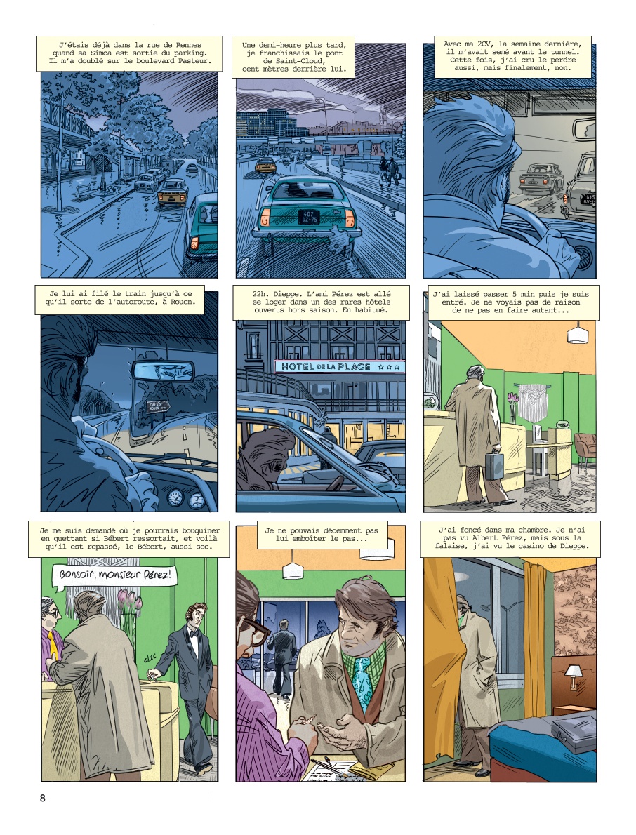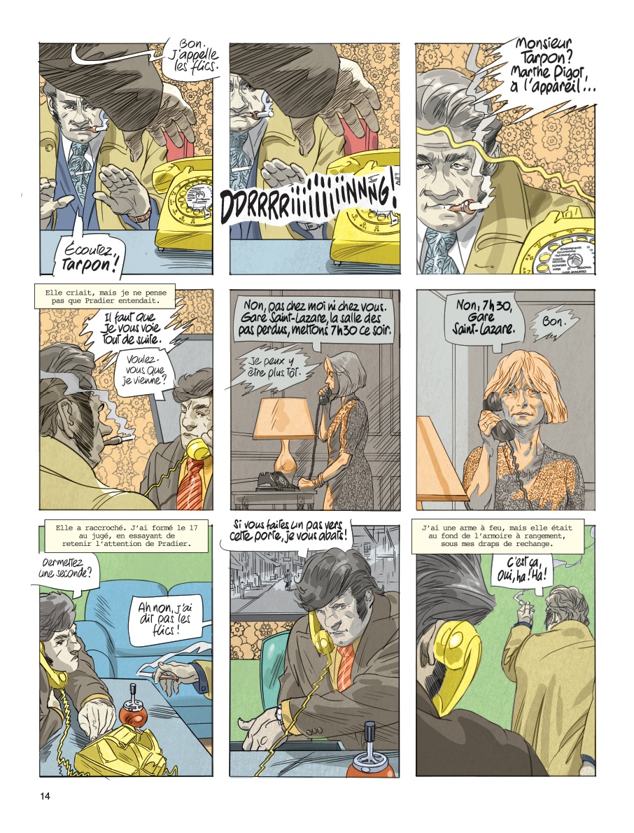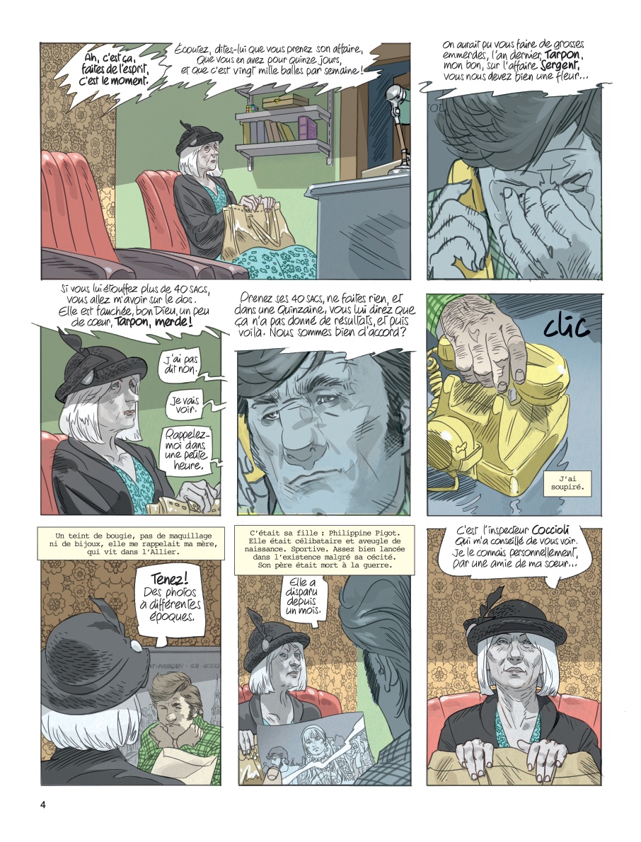 Cabanes quant à lui multiplie les angles et les cadrages serrés pour suivre au plus près les rebondissements comme il l’avait fait dans les adaptations précédentes. Atmosphères pluvieuses, nuits sales, jeunes femmes dénudées et voitures d’époque peuplent cette évocation des seventies. Il dessine avec gourmandise une époque où malfrats et policiers se poursuivaient au volant de Simca Aronde, de Peugeot 504 et où les téléphones étaient encore à fil…