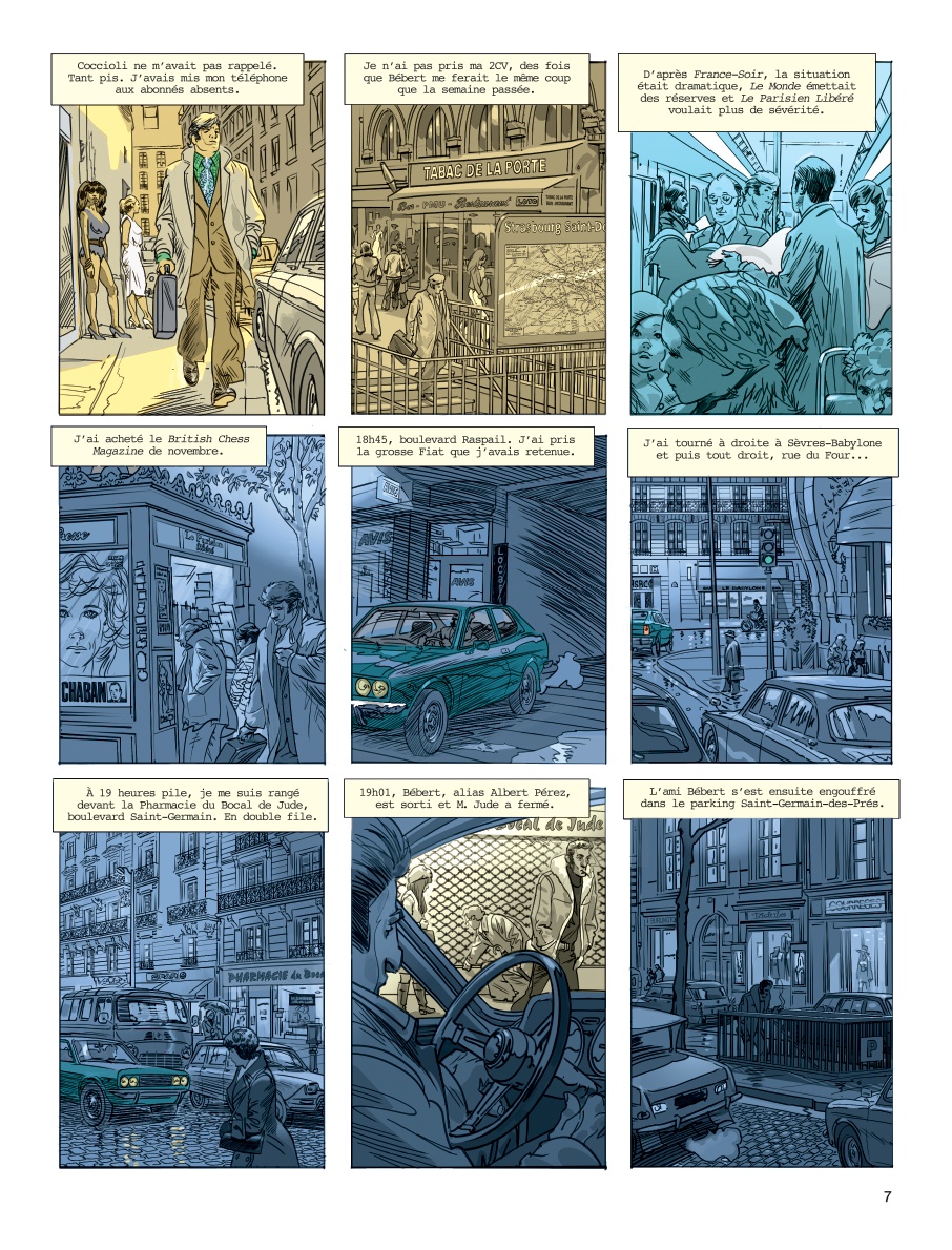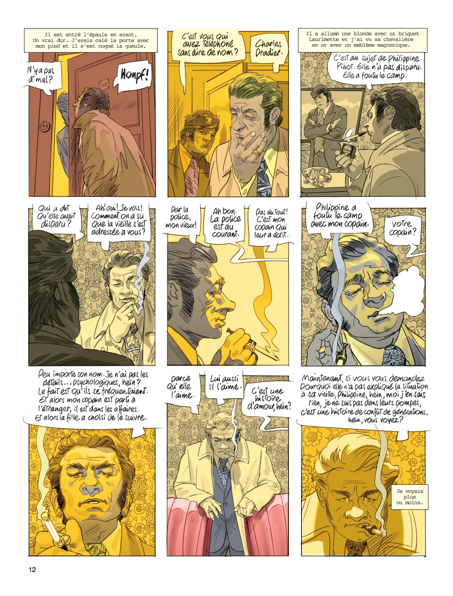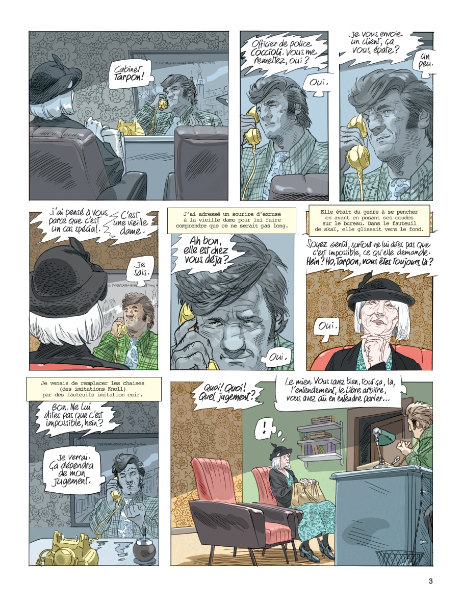 Cabanes quant à lui multiplie les angles et les cadrages serrés pour suivre au plus près les rebondissements comme il l’avait fait dans les adaptations précédentes. Atmosphères pluvieuses, nuits sales, jeunes femmes dénudées et voitures d’époque peuplent cette évocation des seventies. Il dessine avec gourmandise une époque où malfrats et policiers se poursuivaient au volant de Simca Aronde, de Peugeot 504 et où les téléphones étaient encore à fil…