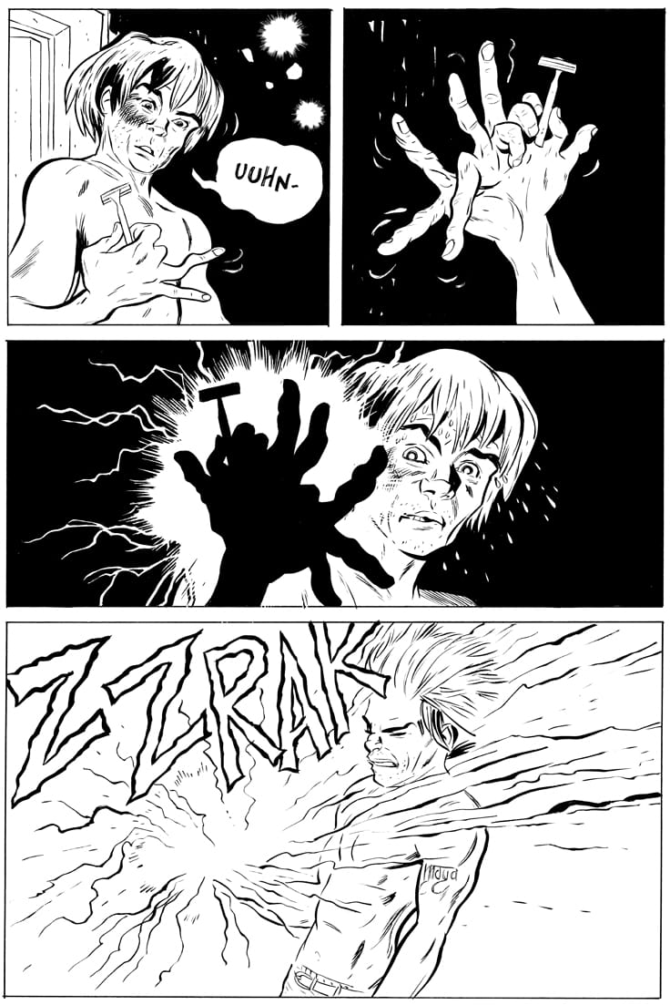 Pour se refaire la santé, il entre dans un bar, y consomme un cocktail et fume un cigare. Alors qu’il choisit une musique dans le juke-box, il est surpris par un homme à l’allure étrange qui lui tire dessus. S’ensuit une course-poursuite sur les toits de la ville. Il ne sait rien de ce type : ni son nom, ni pour qui il travaille. Son seul indice : une puce glissée sous la peau de son avant-bras. Il récupère alors ces deux propulseurs, le Picasso sur le dos et s’enfuit. Il trouve alors refuge chez Annie, son amie…