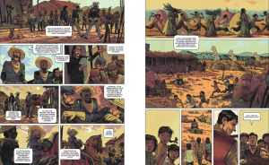 Western historique, flirtant avec l’authenticité, Remington 1885 de Josep Maria Polls et Sagar Fornies (A bout de bras) raconte cette confrontation fantasmée avec savoir-faire : l’histoire est savamment menée et ménage un suspense certain. Quant au dessin, baigné des couleurs chaudes du Sud-Ouest américain, il se laisse découvrir avec plaisir. A la fin de l’ouvrage, les lecteurs découvriront un dossier apportant des précisions sur les existences des deux principaux protagonistes ainsi que des dessins de Remington. Un bonus appréciable.