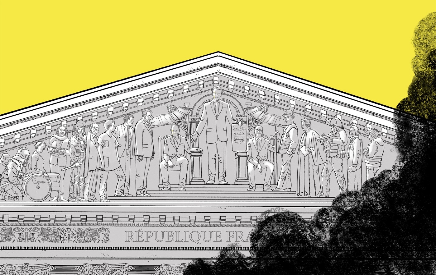 Res Publica présente le bilan en dessin du quinquennat d’Emmanuel Macron, entre néolibéralisme, Gilets jaunes, Covid-19 et dérives policières. Un bilan-pamphlet proposé par David Chauvel et Malo Kerfriden.