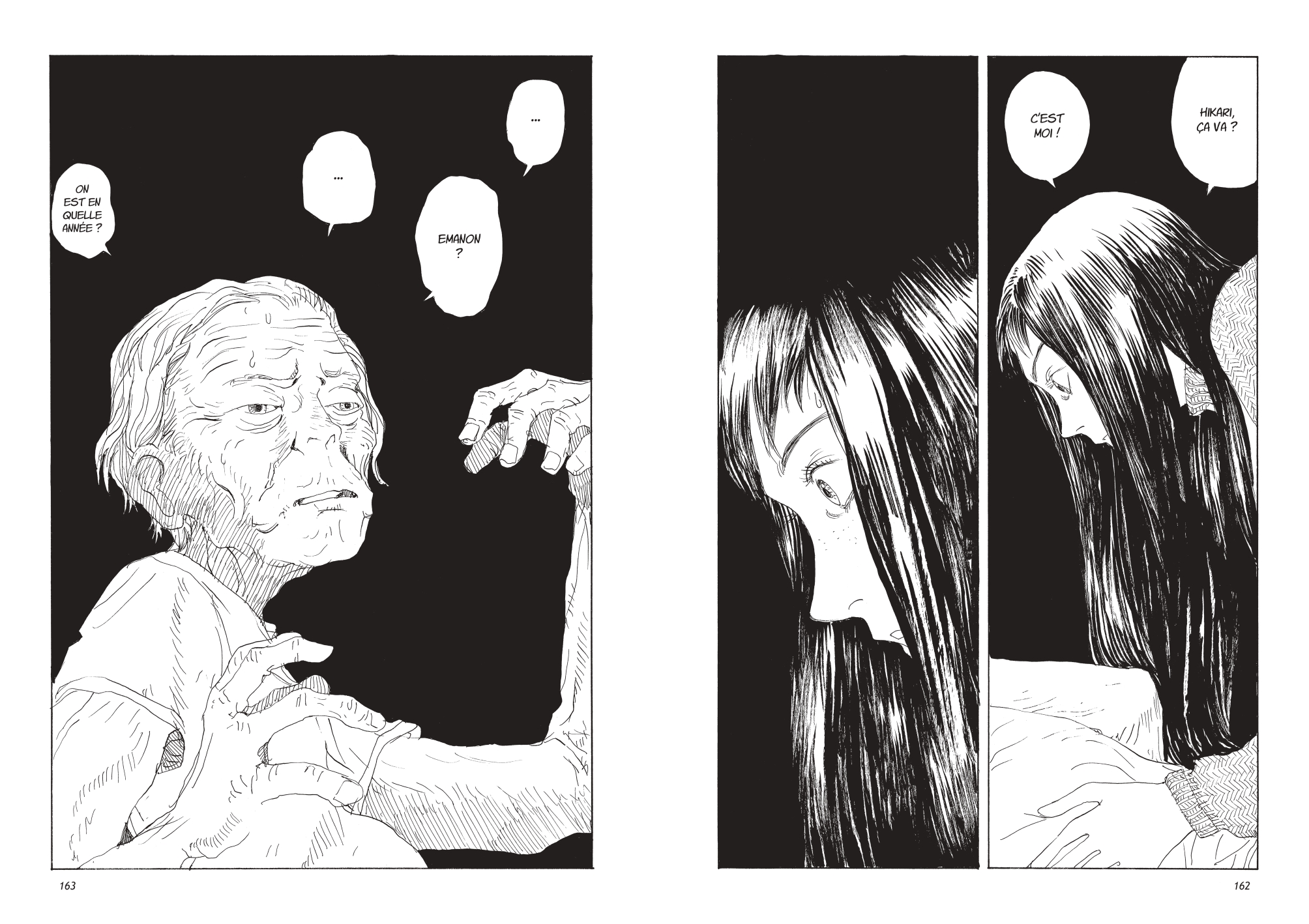 Pourtant, les événements piquent notre curiosité. On bascule dans une série de changements où tout pourrait s’accélérer brusquement. Comme la fois où l’on rencontre Takuma, on l’on croise la jeune Hikari en 1964 et en 1990, où elle tombe amoureuse de Ryozo, où Choichiro s’impose dans sa vie. Autant de moments saisi sur le fil où le lecteur apprend quelque chose d’important avec une simplicité anodine. Les Rêveries d’Emanon participe à une série d’aventure sans but où pourtant des instants décisifs surviennent et construisent la grande histoire d’Emanon.