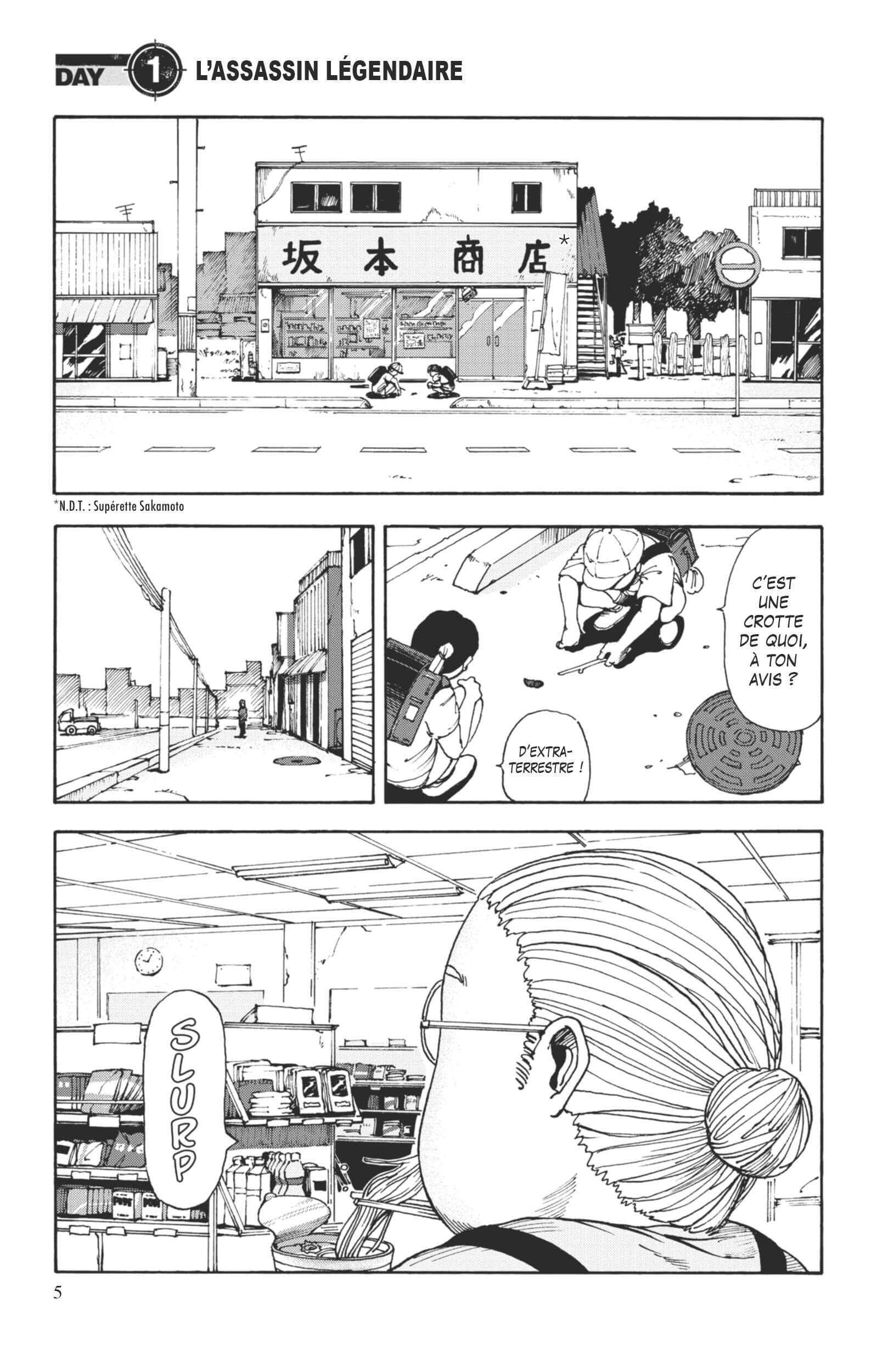Résumé de l’éditeur : Taro Sakamoto est un assassin légendaire, le meilleur d’entre tous, craint par tous les gangsters, adulé par ses pairs. Mais un beau jour… il tombe amoureux ! S’ensuivent retraite, mariage, paternité… et prise de poids. Sakamoto est aujourd’hui patron d’une petite épicerie de quartier et coule des jours heureux avec sa famille. Mais lorsque son passé le rattrape sous les traits de Shin, un jeune assassin télépathe, Sakamoto reprend du service… et malgré son apparence, il est toujours aussi charismatique lorsqu’il passe à l’action !