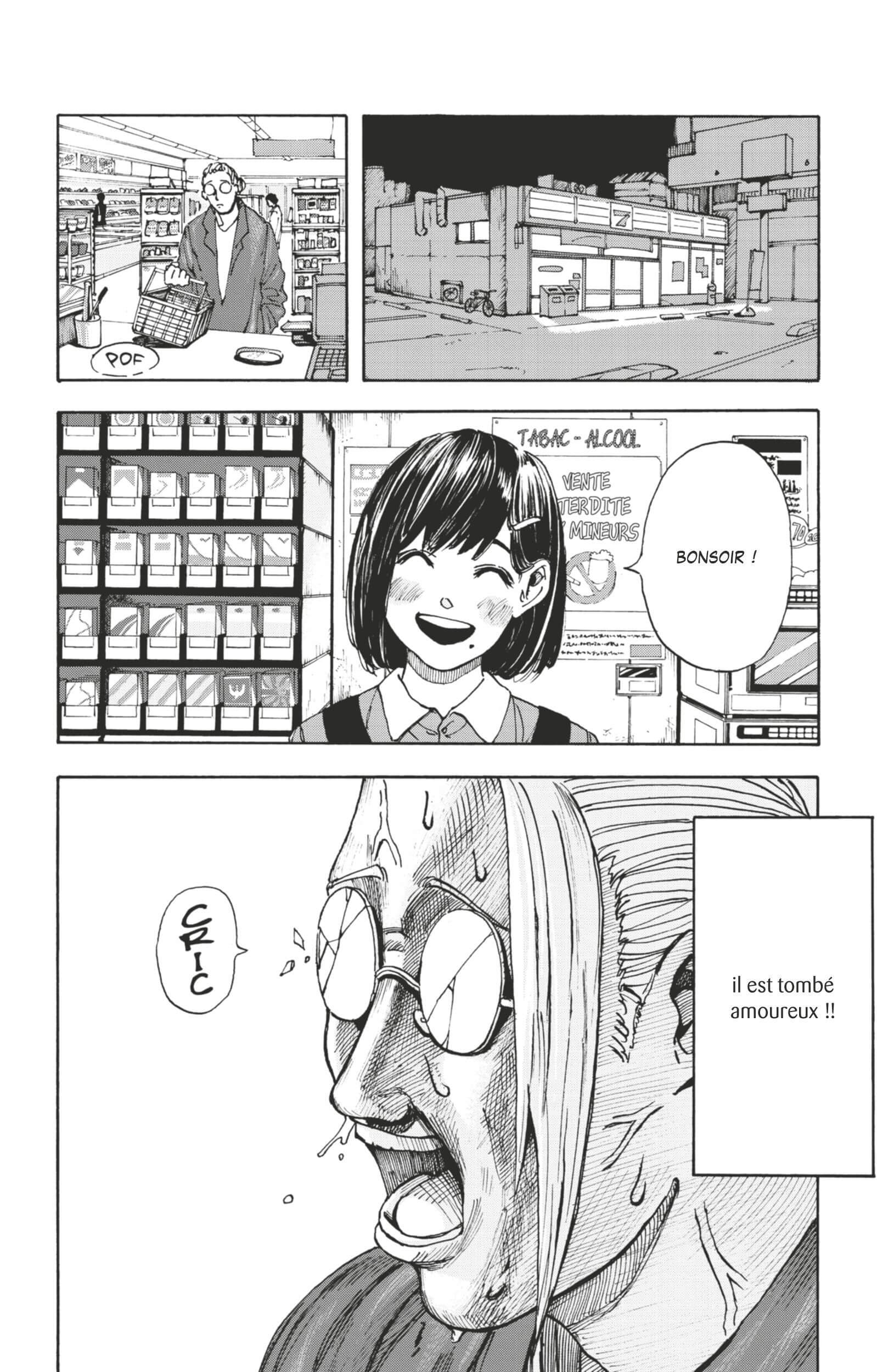 Très vite, Shin se remet à travailler avec Sakamoto. Pas du tout en temps qu’assassin (comme le prévoyait le plan initial) mais en tant que vendeur en supérette. Revirement de situation inattendu (pour Shin).
