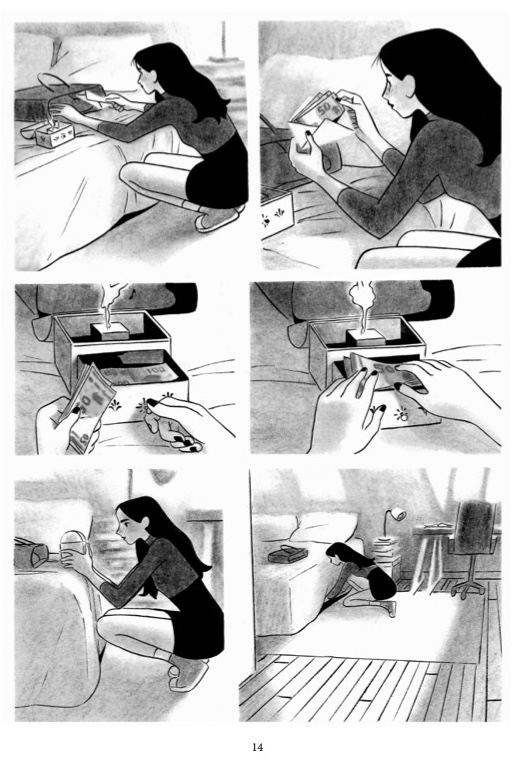 Avec un dessin sans fioritures, l’autrice se concentre sur l’essentiel : nous partager plusieurs réalités. Celle de la prostitution estudiantine, de l’exploration de la féminité face au patriarcat ambiant ou encore du passage de l’adolescence à l’âge adulte. Mais là où elle aurait pu tomber dans l’écueil de proposer une version stéréotypée et glamour de son personnage, Sixtine Dano en fait une femme en totale maitrise de la situation, consciente de son pouvoir et de l’émancipation qui en découle. Livre féministe, Sibylline pointe aussi du doigt la désensibilisation autant que la solitude s’instillant au fur et à mesure que les rencards avec amants et autre « sugar dadys » se fait régulière.