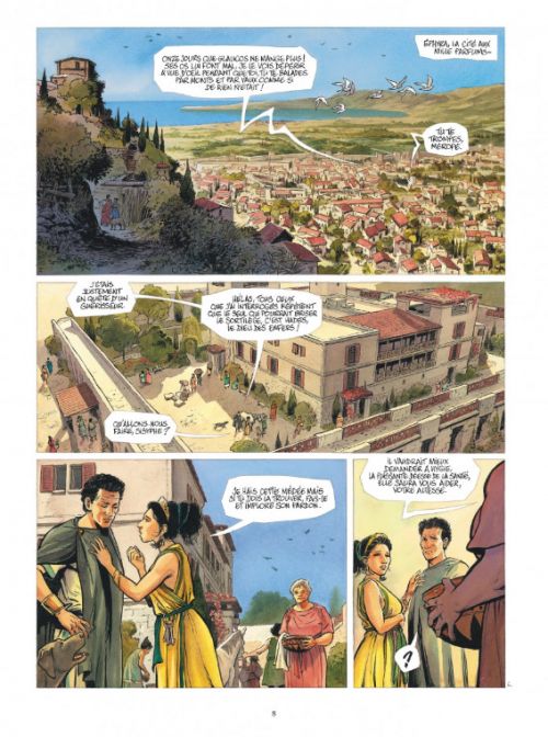 D’abord, une parfaite maîtrise du trait. Dans un style réaliste, Peynet offre des visages expressifs et des décors crédibles. Pour illustrer les souffrances de l’humanité face au divin, c’est un excellent choix qui permet de créer de la proximité entre le lecteur et les personnages. Et après tout, les mythes sont-ils là pour édifier les humains.