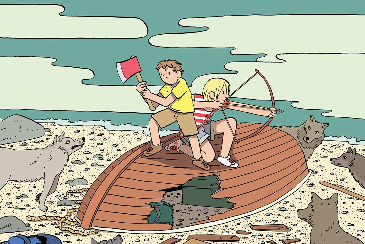 Après un excellent premier volume, Max de Radiguès poursuit le périple des deux jumeaux. A peine débarrassés du fantôme de Arne, qu’ils doivent éviter une avarie sur leur bateau. Ils sont alors accueillis sur la plage par une meute de loups.