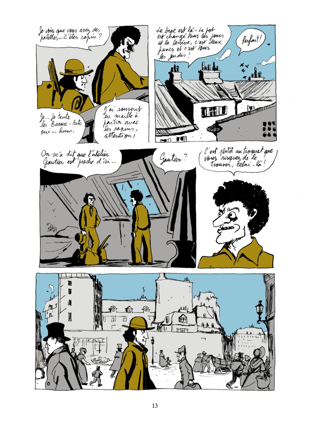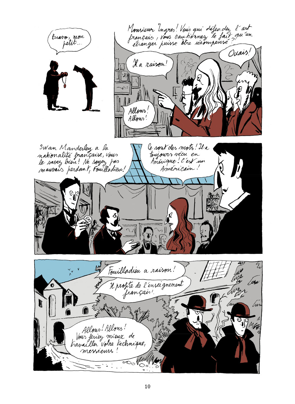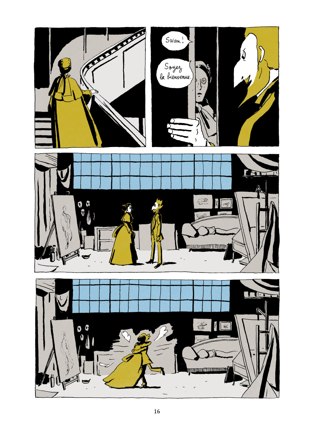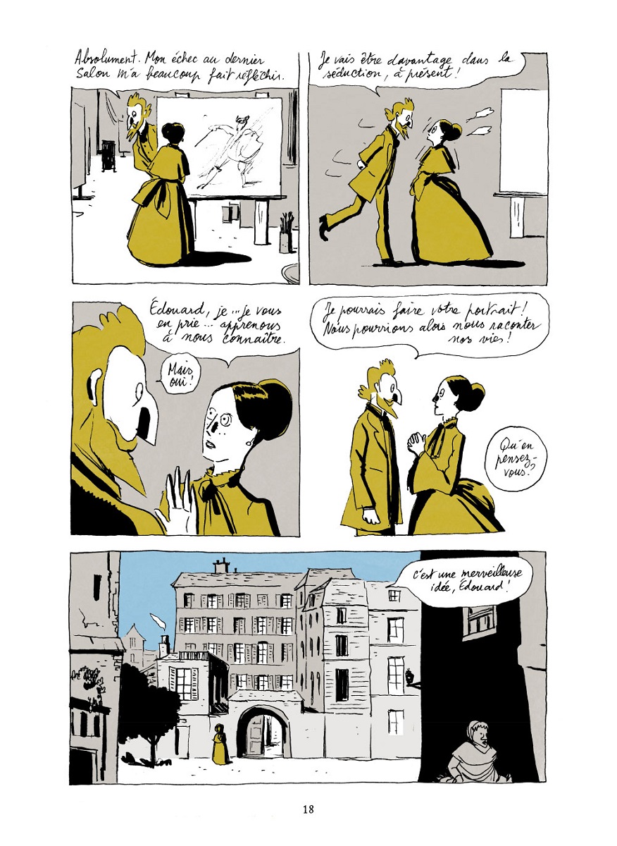 S’il met sur la route de ses deux héros des personnalités historiques ayant existé (Degas, Manet, Monet, Couture, Ingres…), il leur cisèle une psychologie très forte. Swan parle de peinture et des peintres, de cours, de rapins (artistes peintres qui copient de grandes œuvres) et d’apprentissage mais il aborde aussi des thématiques très actuelles et résolument modernes : le féminisme et l’émancipation. Bien sûr qu’il était plus simple pour les femmes issues de familles riches, aristocratiques ou de notables, puisqu’elles recevaient une instruction, elles étaient donc lettrées contrairement aux femmes du bas peuple. Mais Swan doit se travestir pour atteindre le saint des saints : l’académie impériale. Cette jeune femme aime, ne se laisse pas faire et n’hésite pas à remettre les importuns à leur place.