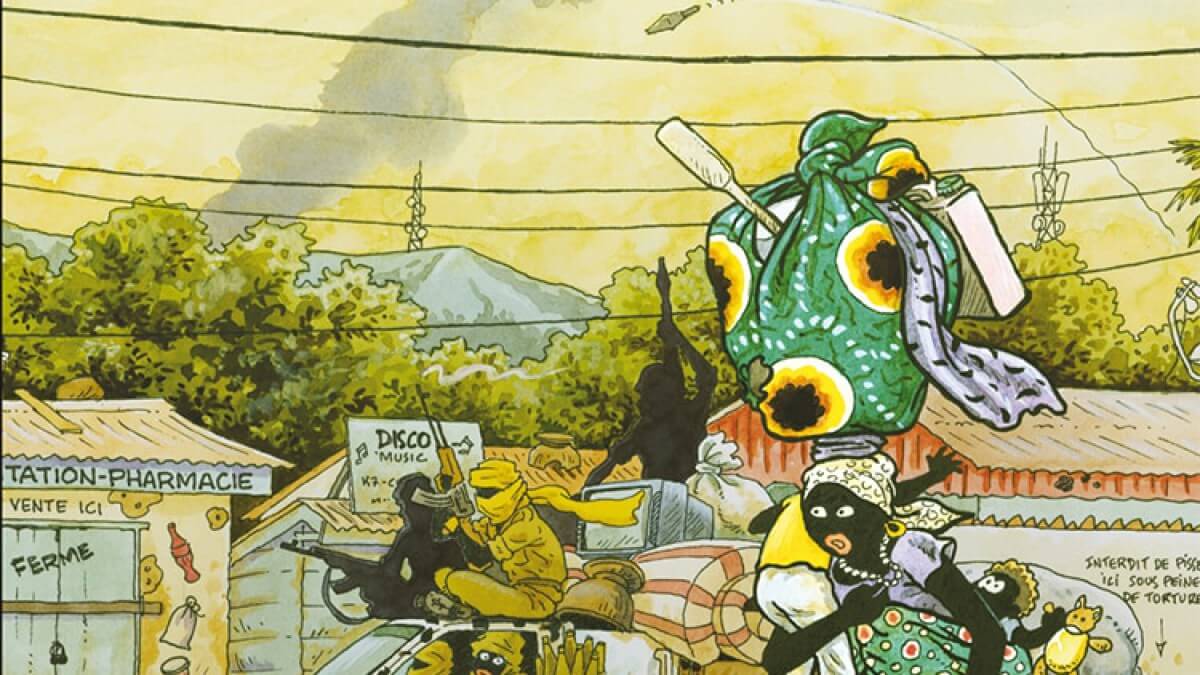 C’est un album témoignage, un album coup de poing qui joint à la noirceur des propos un trait puissant. Dessinée à l’encre et à l’aquarelle, avec des personnages et des décors hauts en couleurs cette chronique de Bangui sous les balles ne laisse pas indifférent…