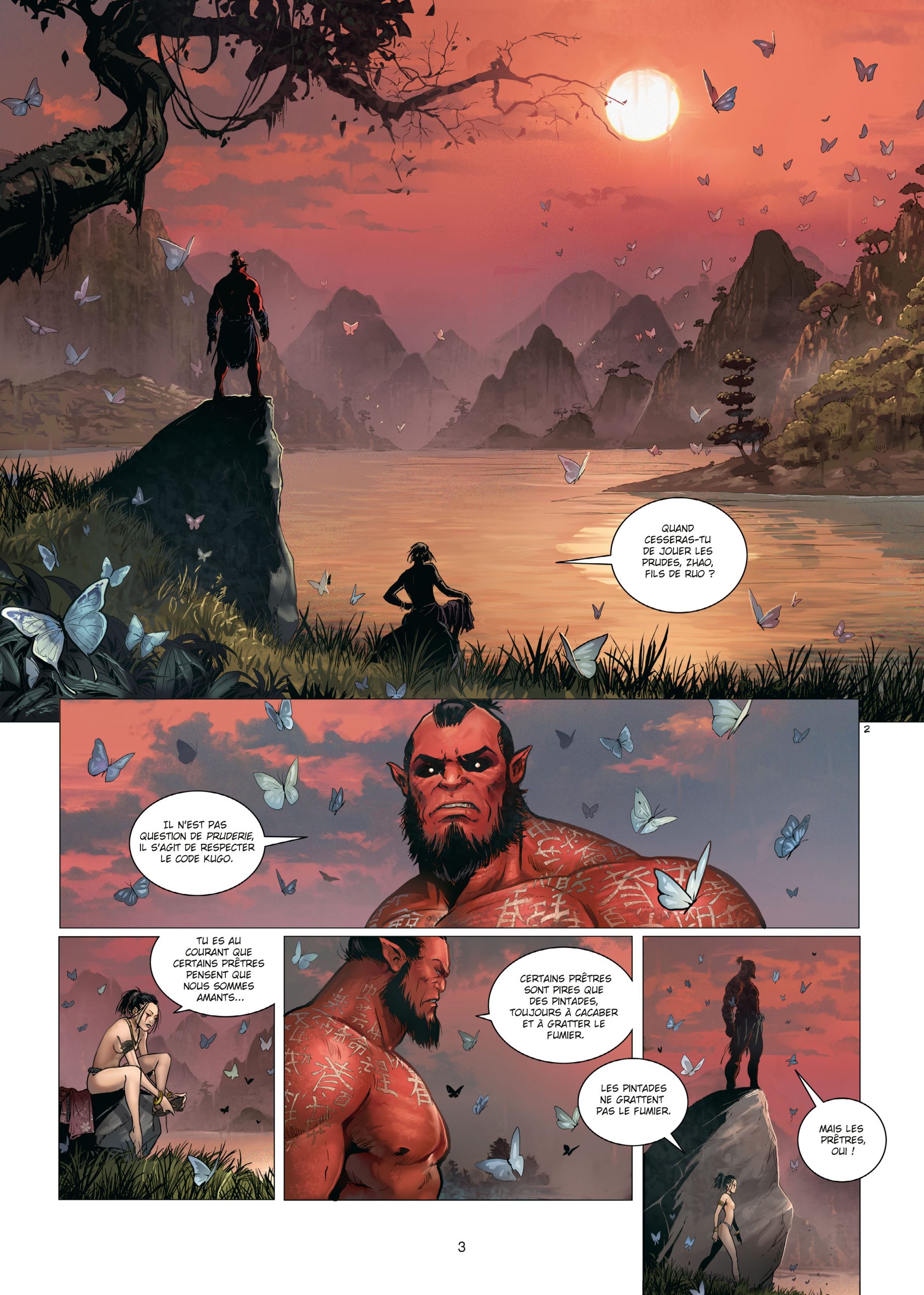 Le trait d’union, ici, peut s’envisager par la figure de Zhao, le samouraï rouge. Est-il un elfe rouge ? Un orc différent des peaux-vertes d’Arran ? L’album ne le dit pas. Nicolas Jarry, sous la supervision de Jean-Luc Istin, semble privilégier l’accessibilité du récit à sa connexion au reste de l’univers. Une bonne idée, car elle permettra aux fans de se saisir de cette nouvelle proposition, mais aussi aux amateurs de fantasy asiatique, de se lancer sans crainte.